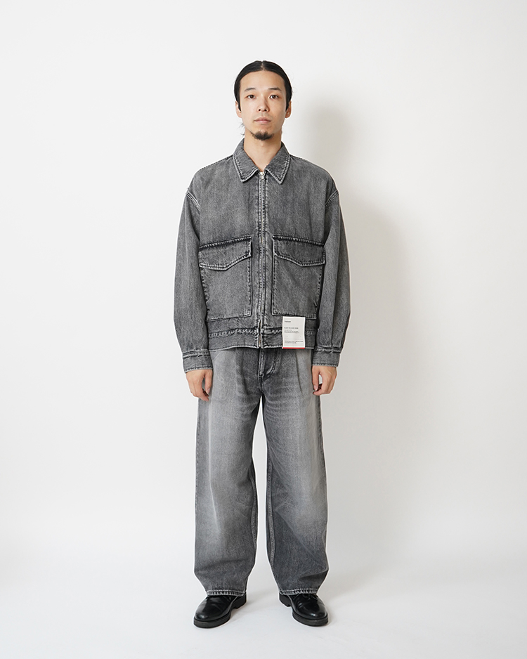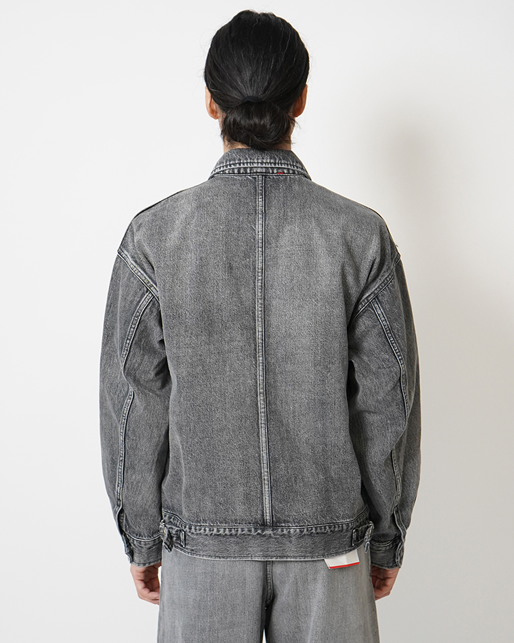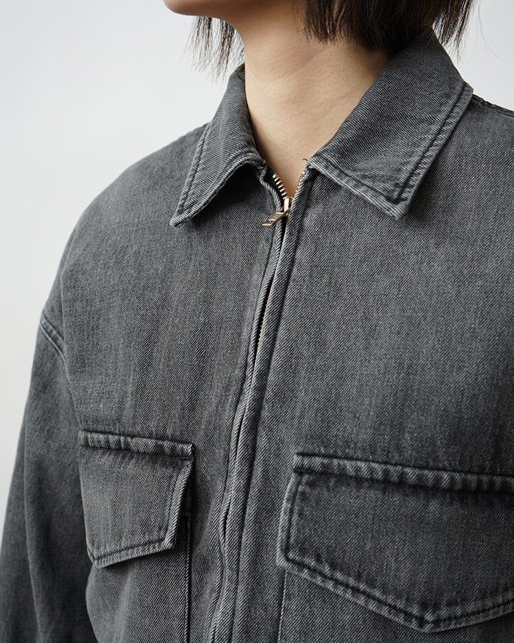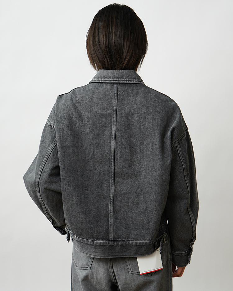 130年もの歴史を誇る米国Cone Denim社が作る13.75オンスのセルビッチデニム。旧式力織機でゆっくりと織り上げることで生まれる、生地表面のざらっとした凹凸やムラがデニム本来の風合いを感じさせる魅力的な素材。コンパクトな身幅に反して大胆にドロップしたショルダーと大振りなスリーブが特徴のフロントジップジャケット。短めの着丈がレイヤリングの幅を広げる1着。長く使い込まれたような淡い色合いのライトフェイド。