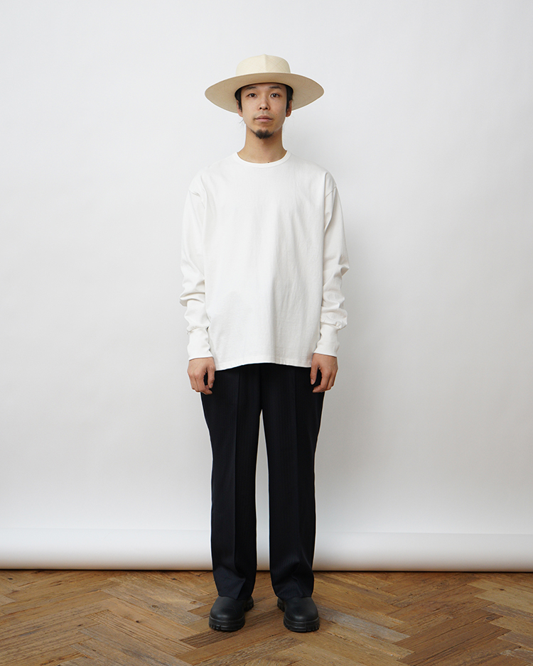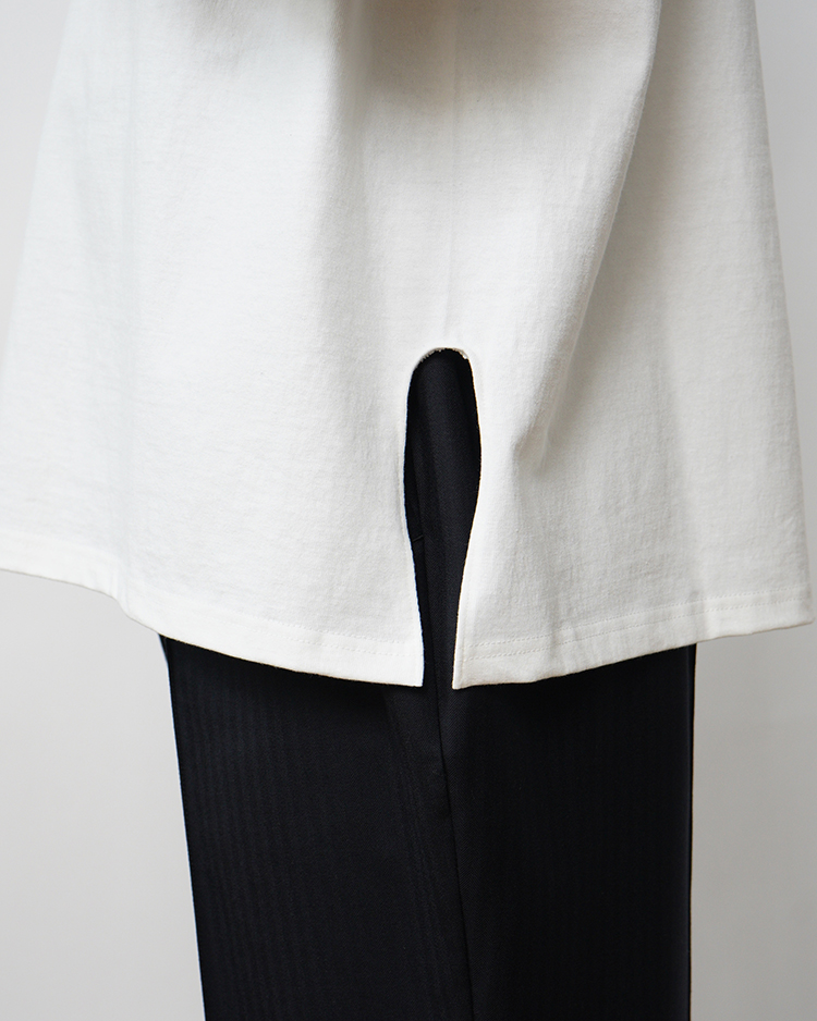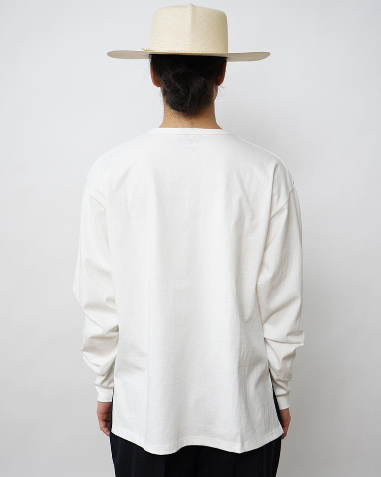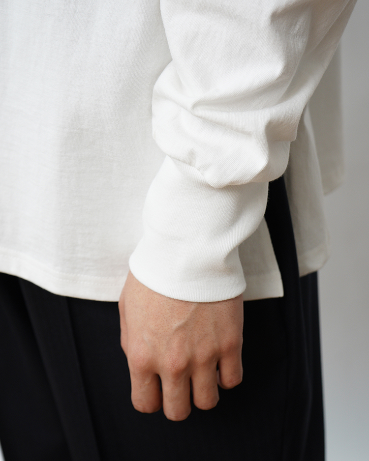 旧式の吊り編み機で製作した丸胴のTシャツです。