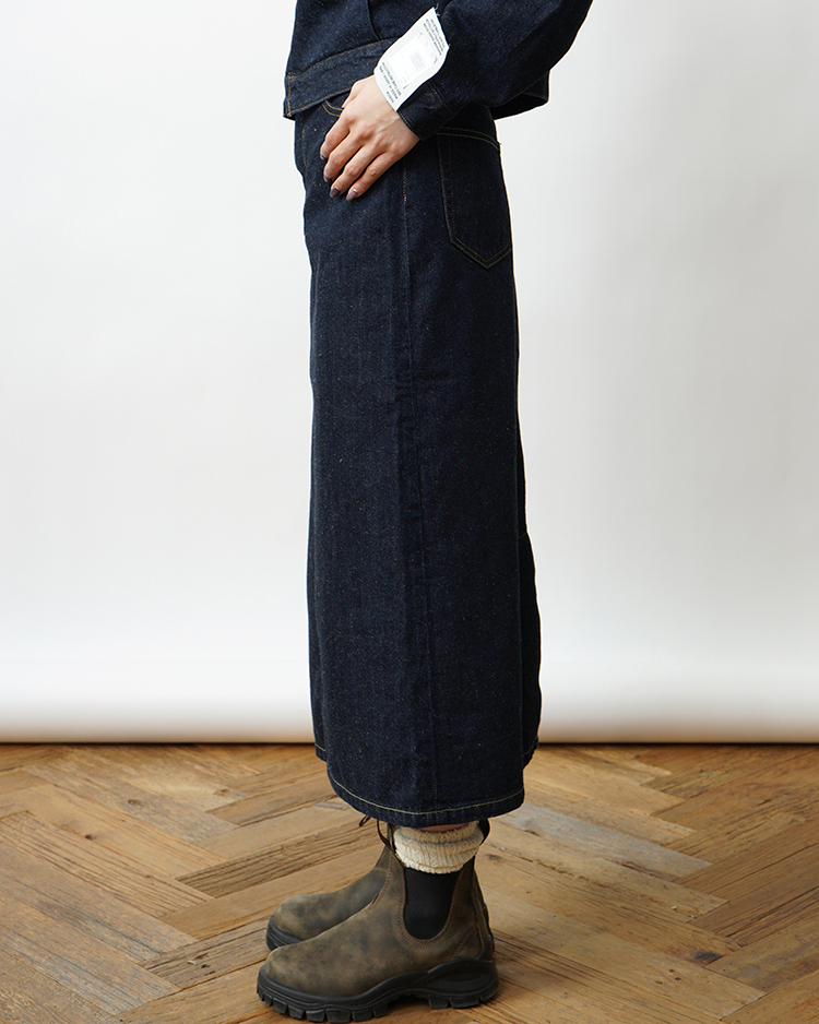 綿と麻で織った10.5オンスの軽いデニムで、スカートを作りました。