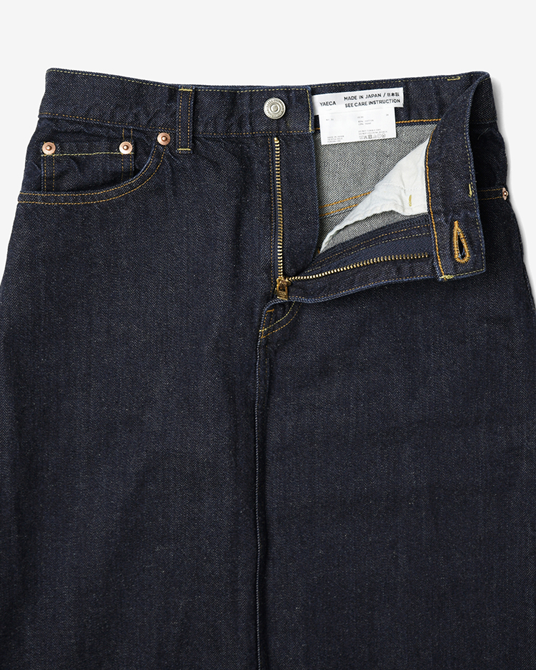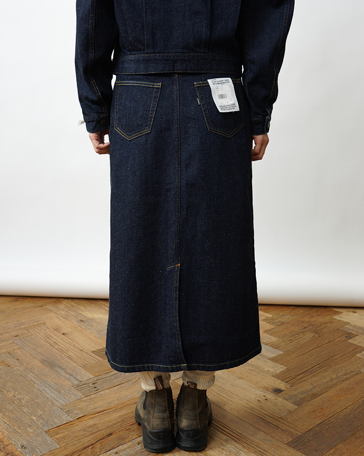 裾の広がりすぎない、ほどよく落ち着いたシルエットのスカートです。裾後にはベントを入れて、大人がリラックスして着ることのできるデニムスカートに仕立ています。