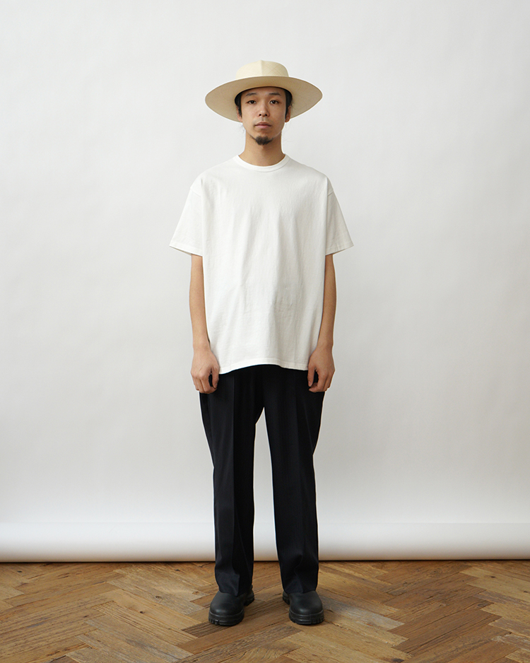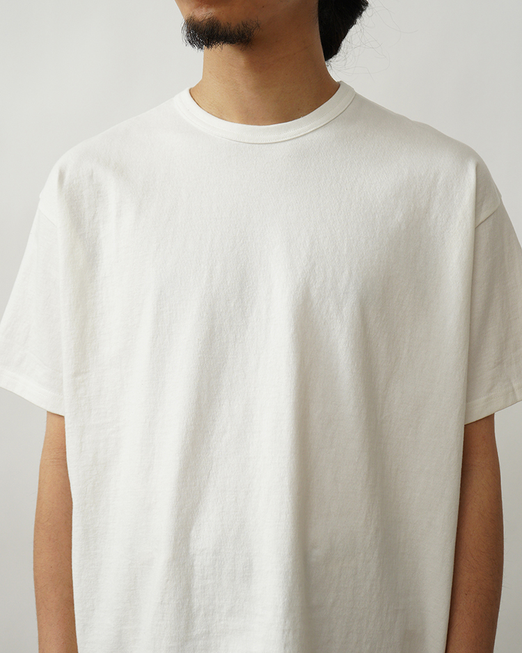 旧式の吊り編み機で製作した丸胴のTシャツです。