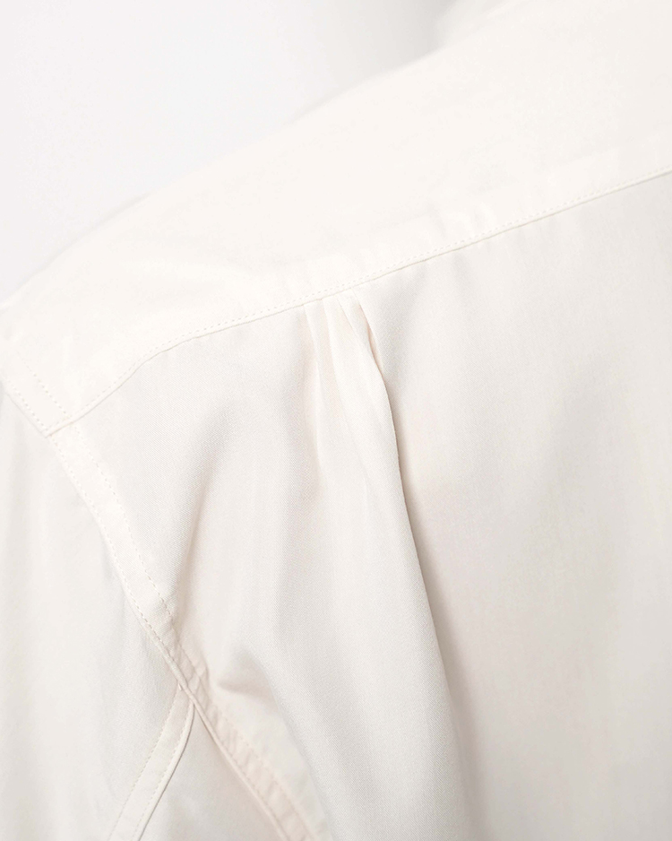 レーヨン/ポリエステルの混紡生地を使用したオープンカラーシャツ。清涼感のある肌触りと肌離れの良さが特徴。アームホールを深く、身幅も広く設定している為、シャツの中の通気性もよく動きやすい作りになっています。