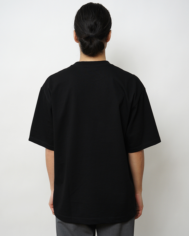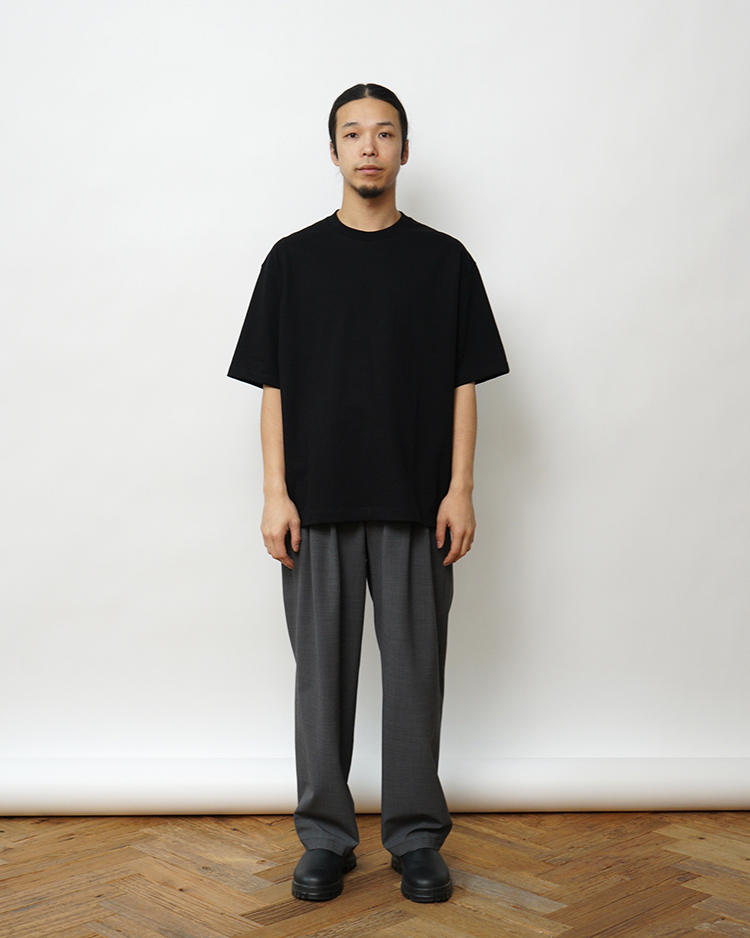ややオーバーサイズなボックスシルエットが特徴のTシャツ。首元はフライスでしっかりとつまっており、きれいすぎず、カジュアルすぎず、どんなシーンでも活躍してくれます。