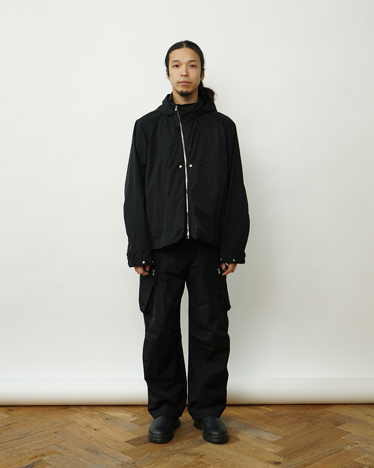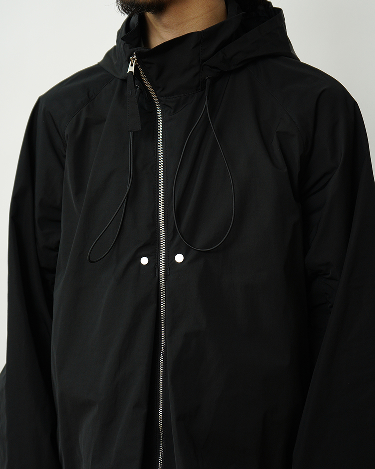 イタリア・OLMETEX社の撥水ファブリックを採用した、リラックスフィットのフーデッドジャケット。