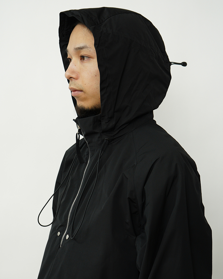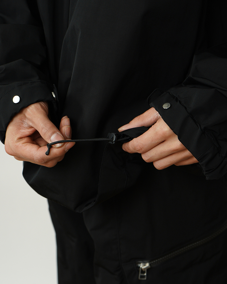 フードと裾にはドローコードを配し、シルエットの調整が可能。