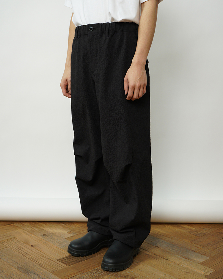 3D KNEE TUCK DRAWSTRING TROUSERS / BLACK