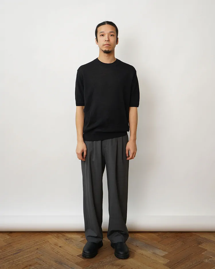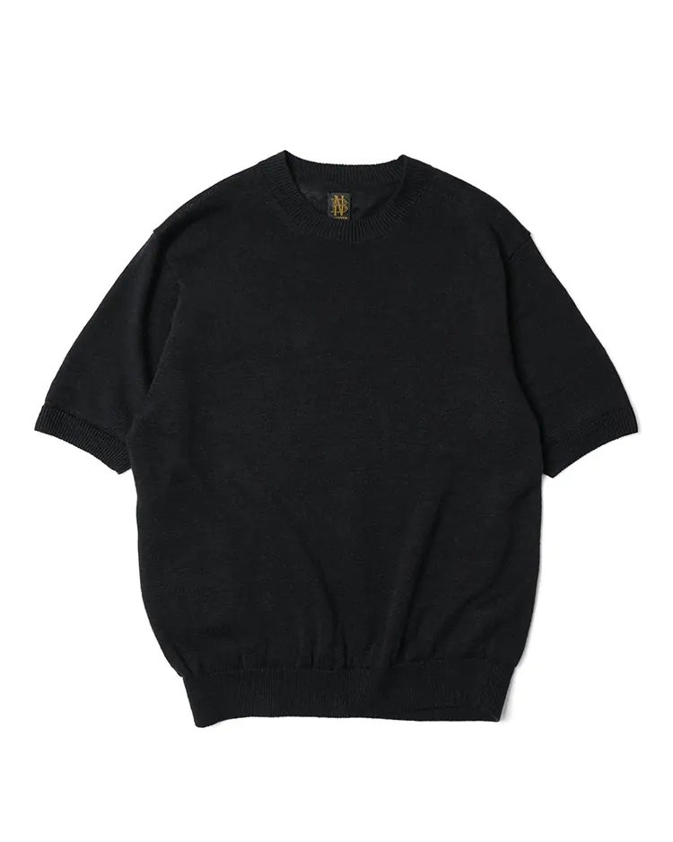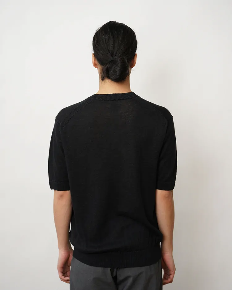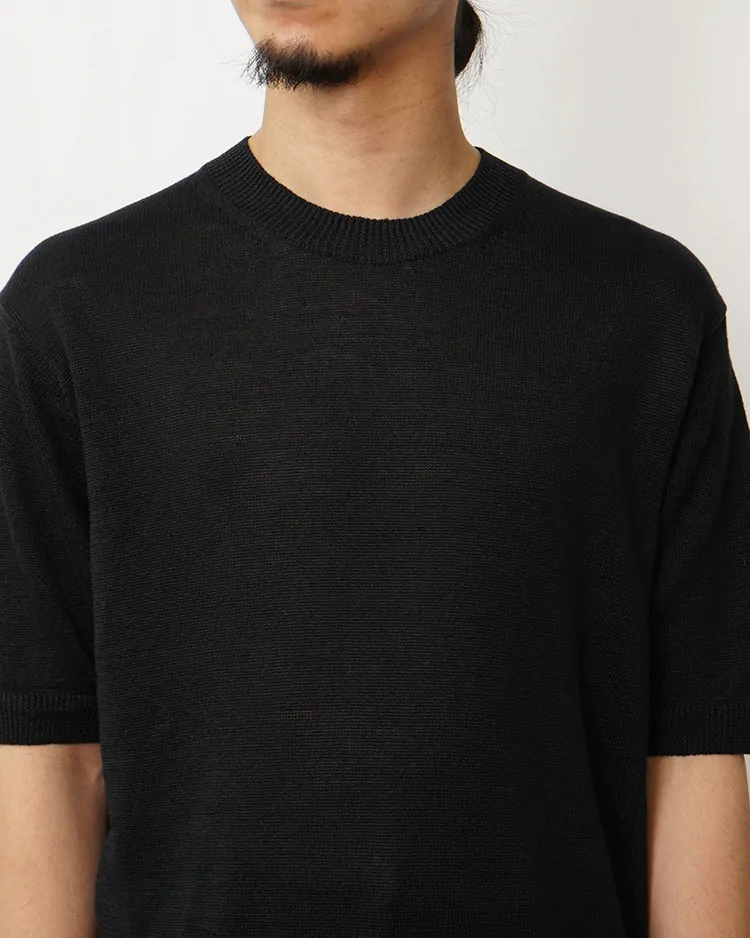 - WASHED HIGH COUNT LINEN CREW NECK SHORT SLEEVE / BLACK
