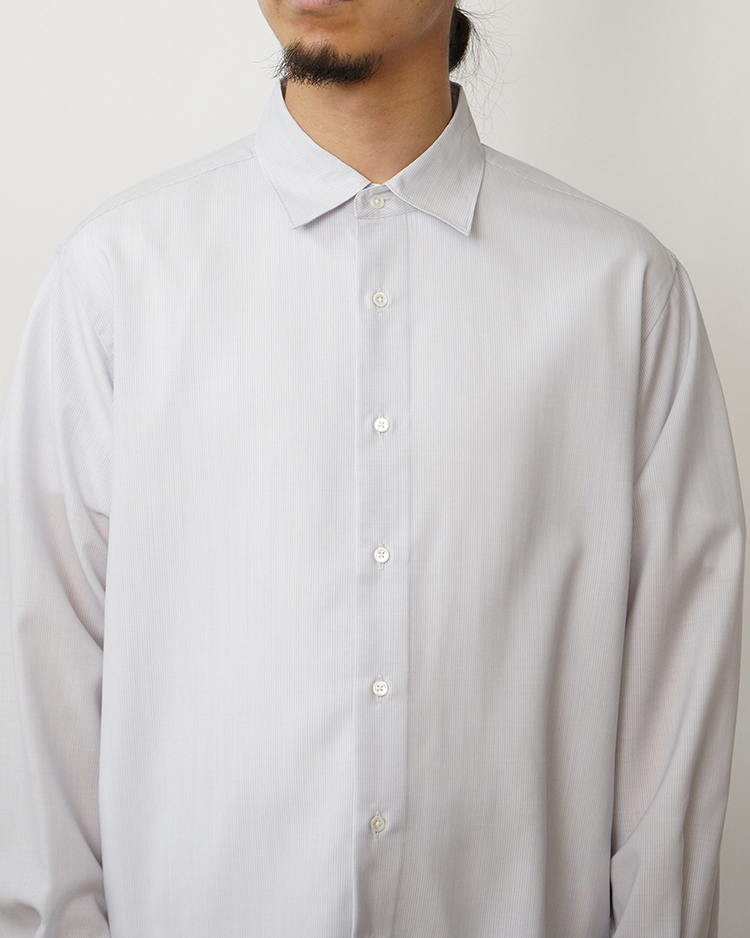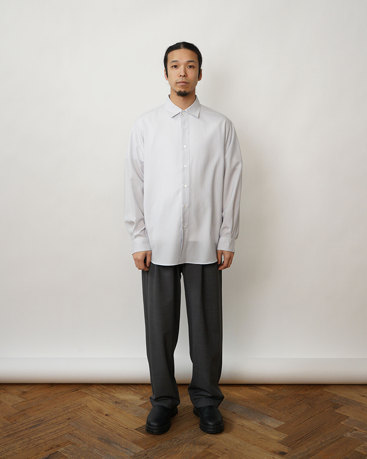 - SOLID WOOL REGULAR COLLAR SHIRT / SAX STRIPE