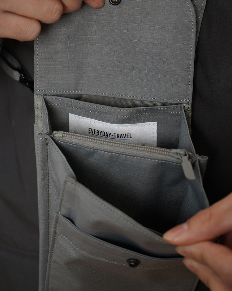 ・パスポートやカード、スマートフォン、バッテリーなどトラベルシーンに必要なものを収納し持ち運べるアイテム