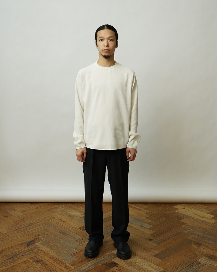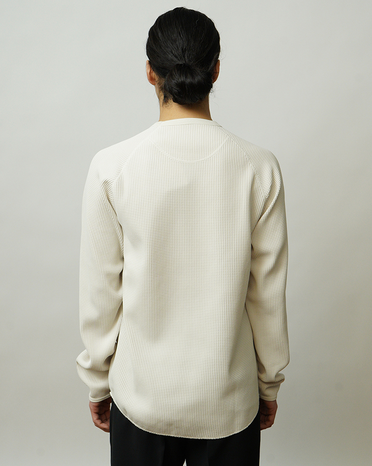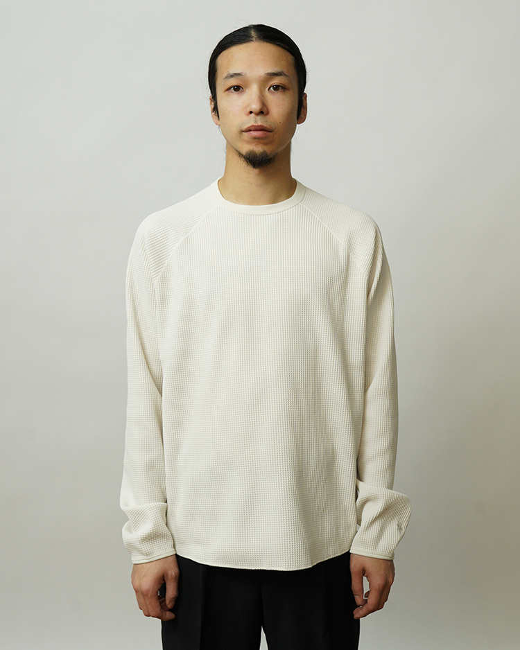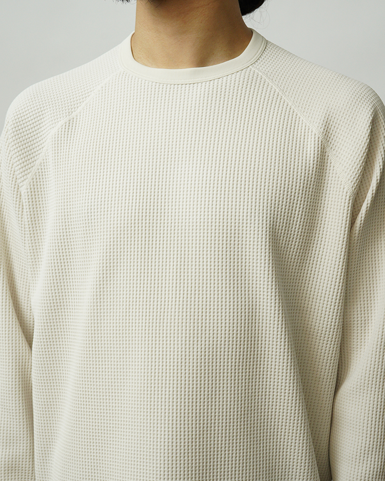 ふくらみがありながらも軽量感を備えた、サーマル生地の長袖Tシャツ。