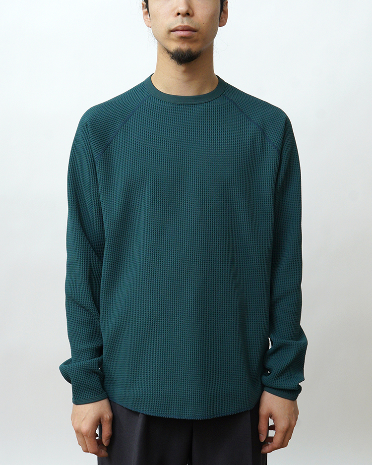ふくらみがありながらも軽量感を備えた、サーマル生地の長袖Tシャツ。