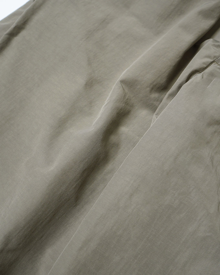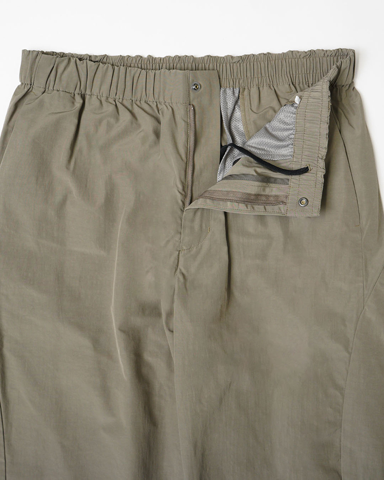 ゆったりとしたワイドストレートシルエットで仕上げた、リラックス感のある着こなしが楽しめるパンツ。リサイクルナイロン100%素材で、独特のシャリ感がある風合いも魅力です。