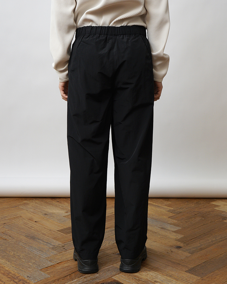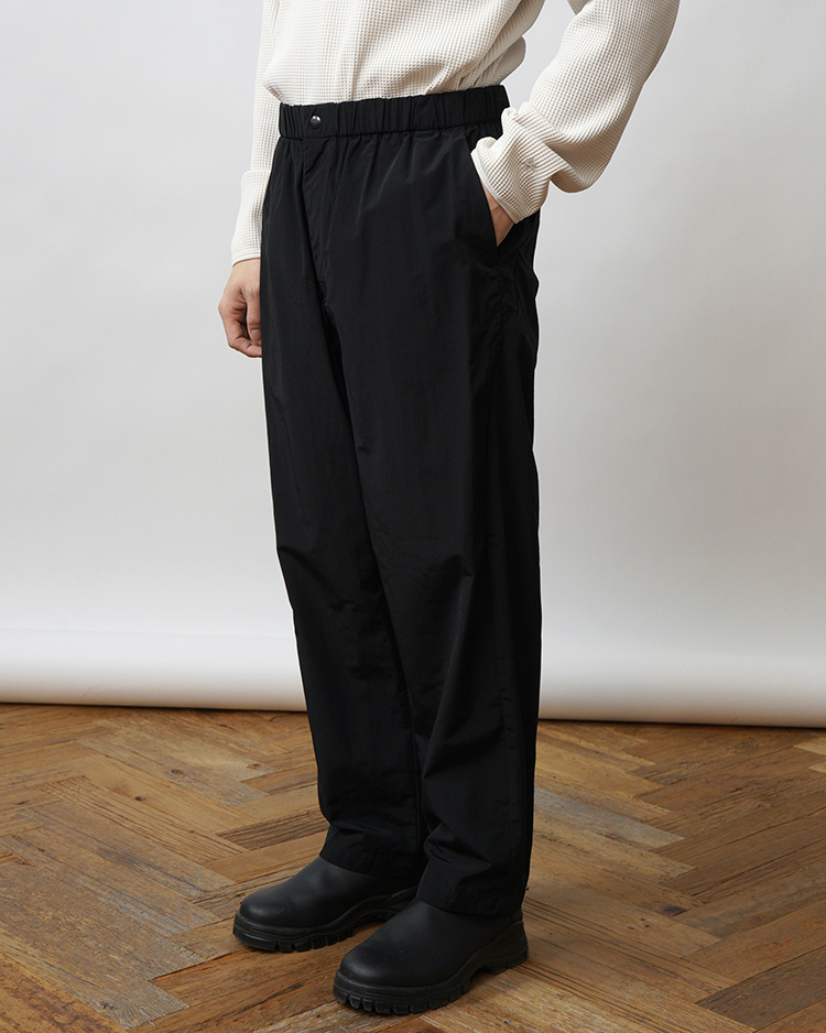 ゆったりとしたワイドストレートシルエットで仕上げた、リラックス感のある着こなしが楽しめるパンツ。リサイクルナイロン100%素材で、独特のシャリ感がある風合いも魅力です。