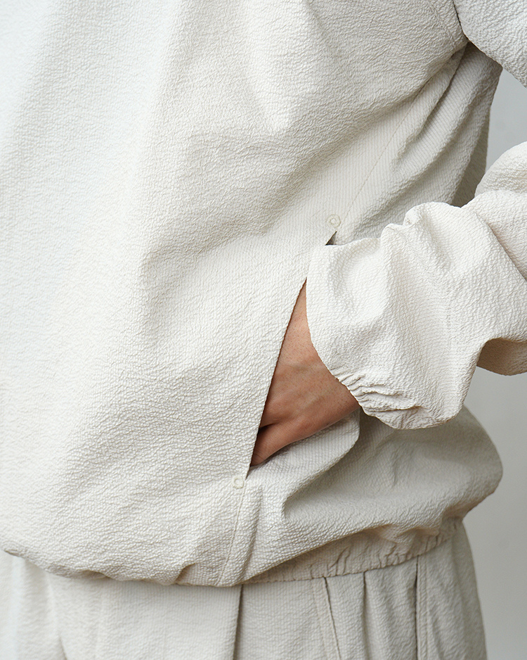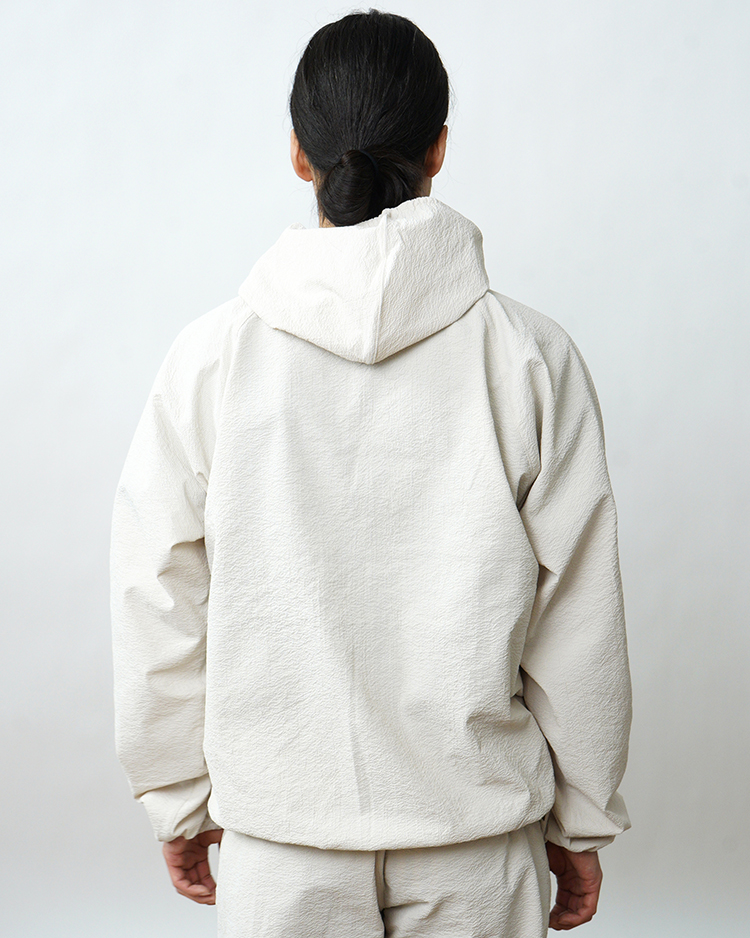 細かく波打つようなテクスチャーが特徴的な生地を使用したアノラック。
