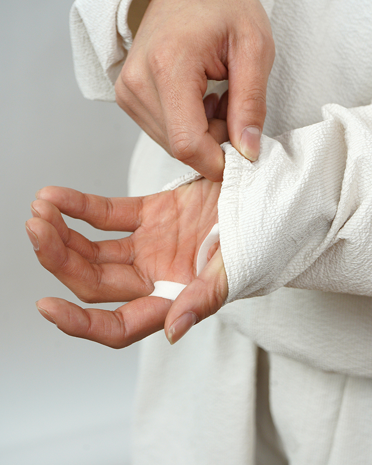 吸汗速乾性に加えて、UVプロテクト(UPF50+、紫外線カット率95%以上)機能をもちます。風をはらむゆったりとしたシルエット、肌に触れる面積の少ない生地によって、日差しの強い時期にも快適に着用可能。共地のスタッフサックが付属し、製品を収納できます。