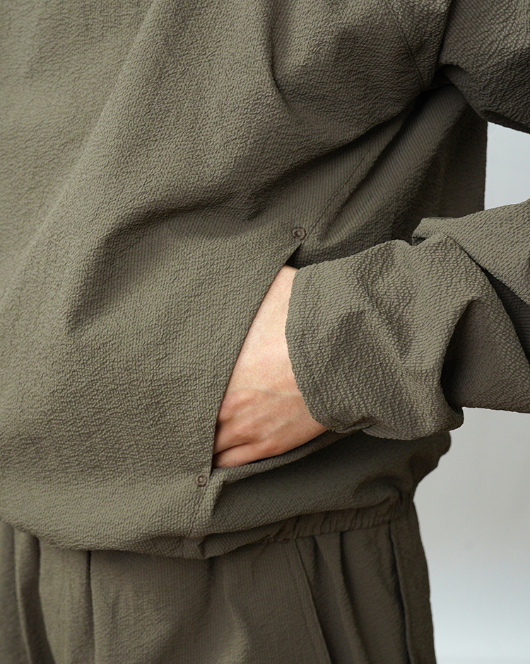 細かく波打つようなテクスチャーが特徴的な生地を使用したアノラック。