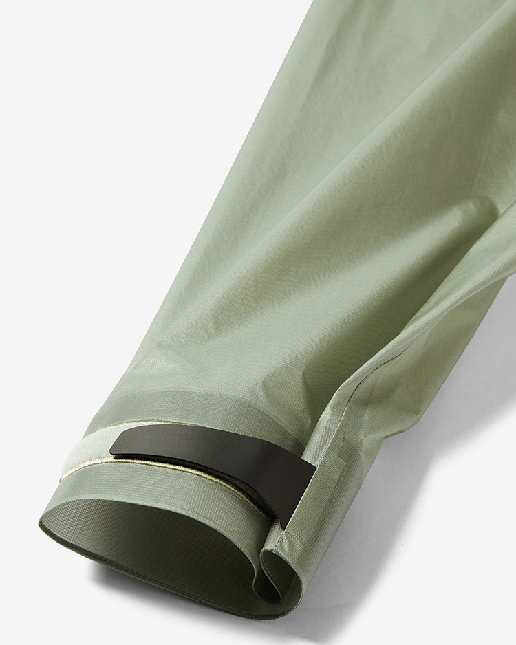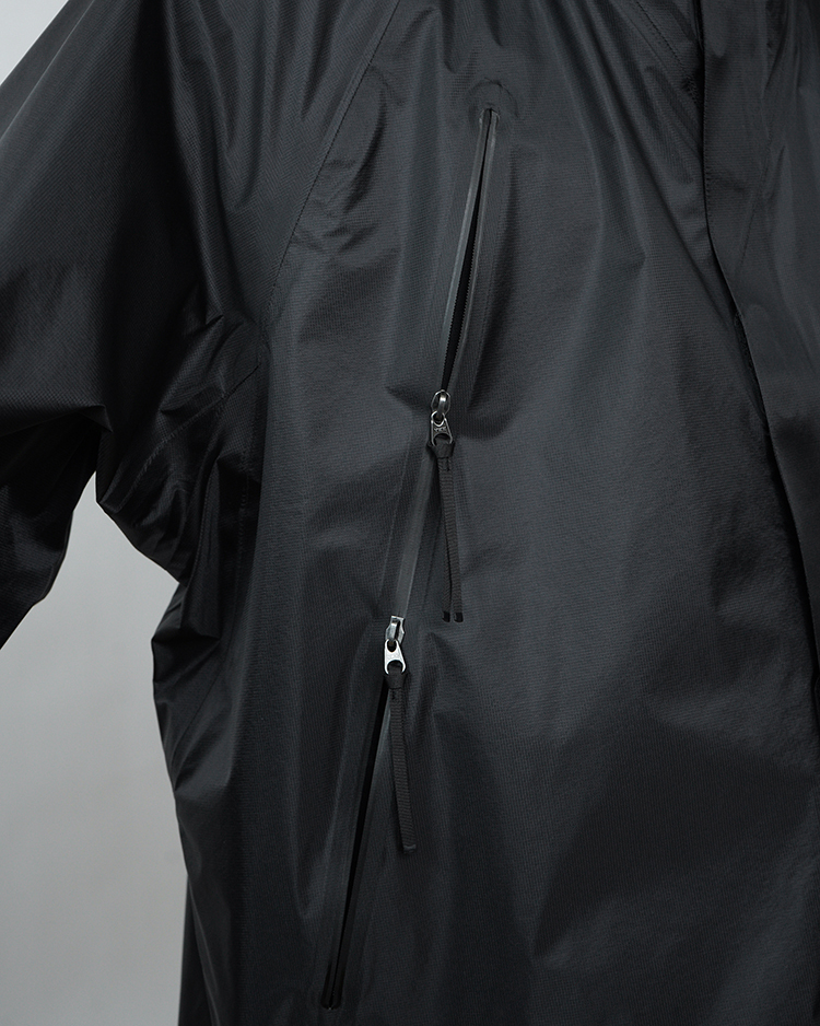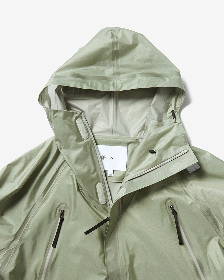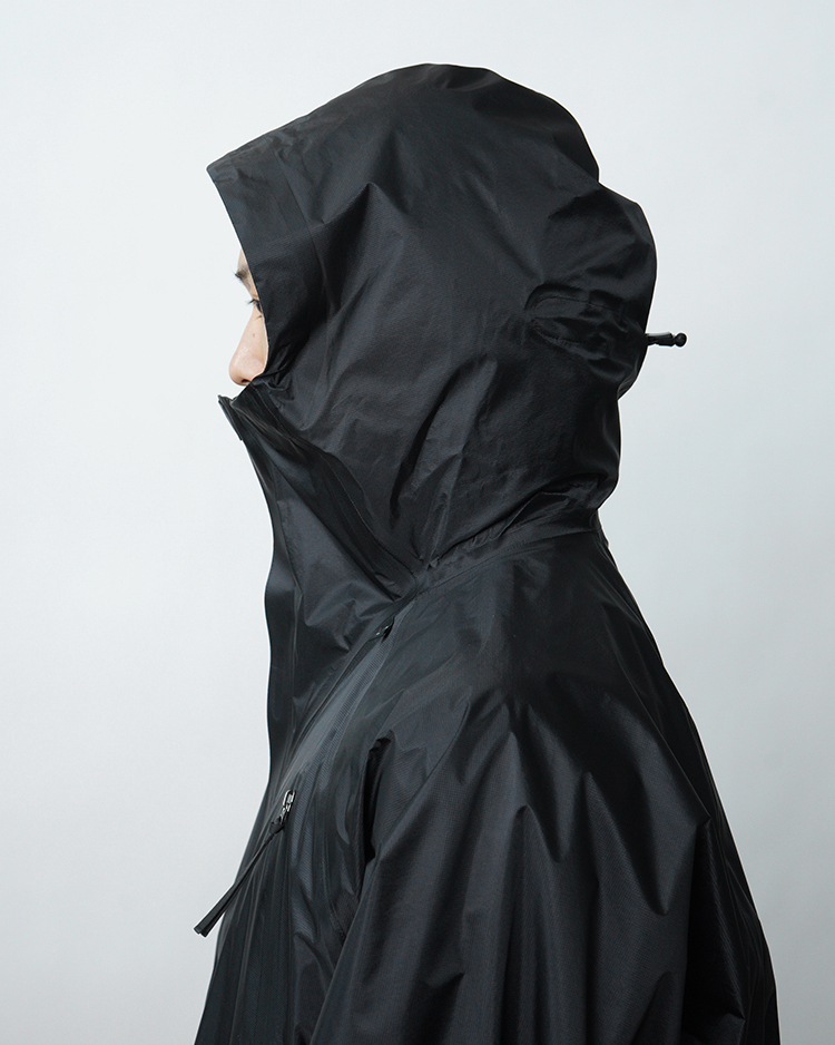 防水透湿性を備える、非常に軽量で透明感のあるナイロン生地が特徴。
