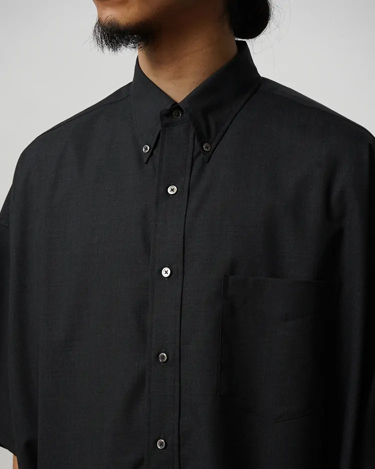 Fine Wool Heather Oversized S/S B.D Shirt / CHARCOAL