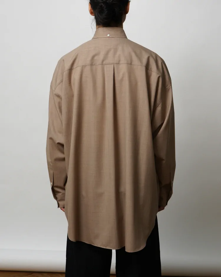 - Fine Wool Heather Oversized L/S B.D Shirt / TAUPE