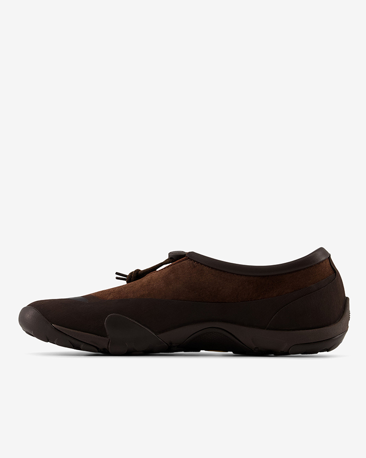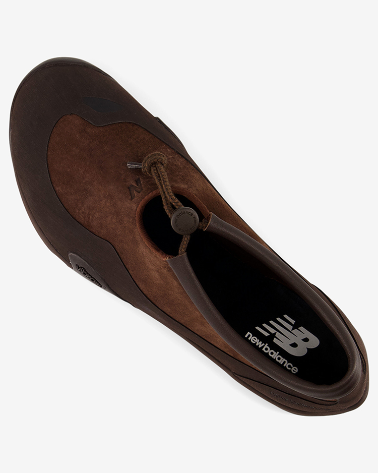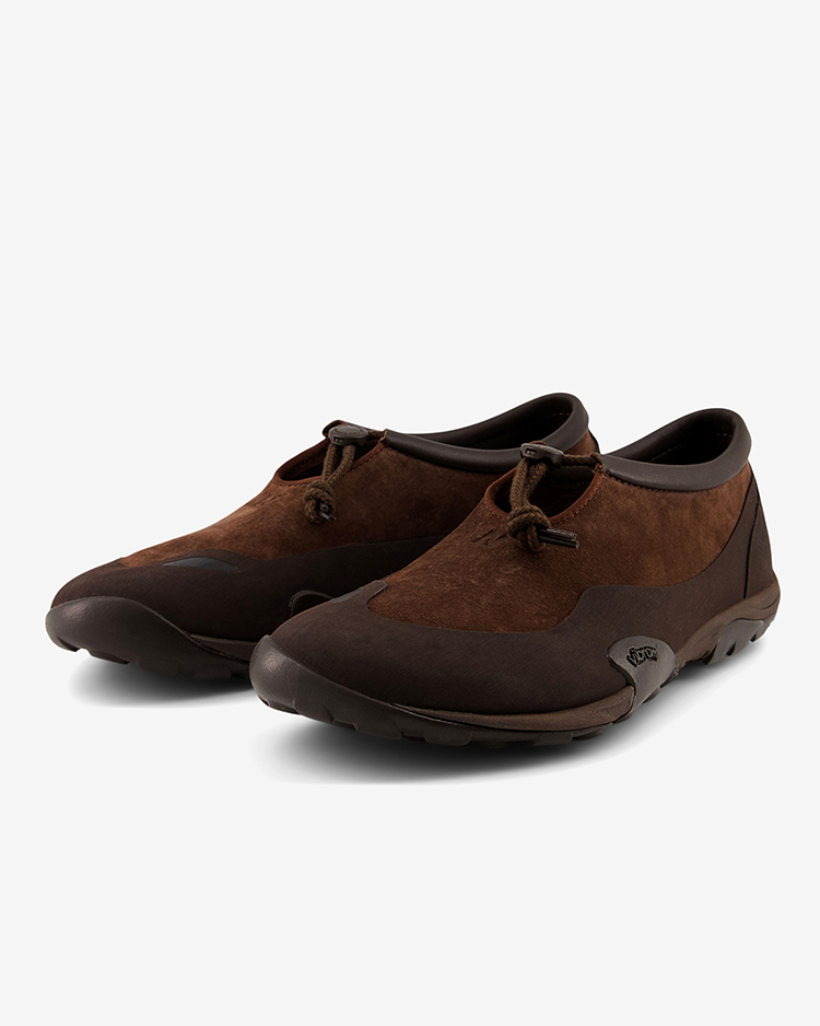 最小限のクッションを持たせたミッドソール、トレイルランニングから着想を得た丸みのある独自形状のVIBRAMソール、ラバーマッドガードで構築。