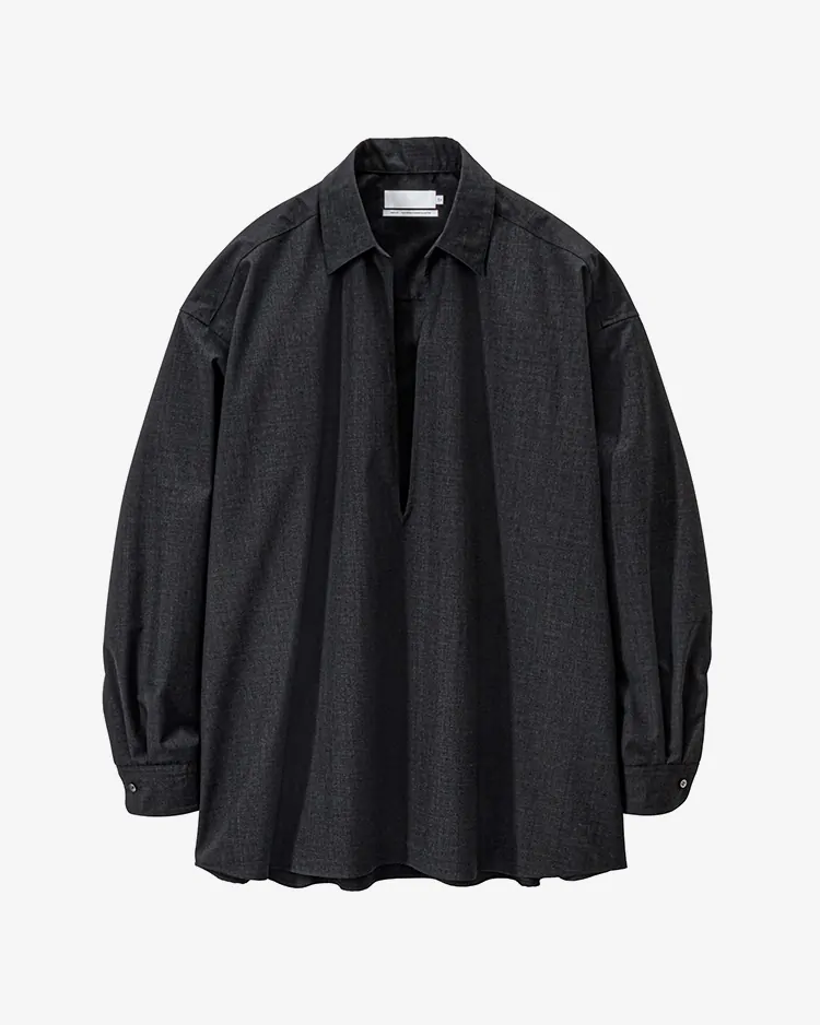 - Fine Wool Heather L/S Skipper Shirt / CHARCOAL