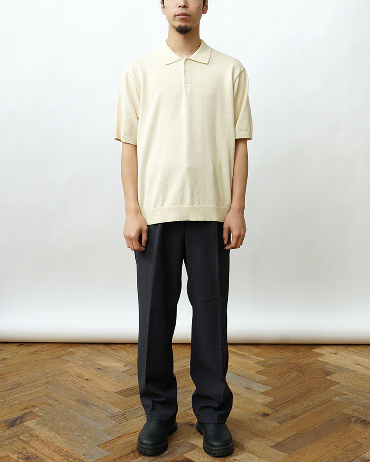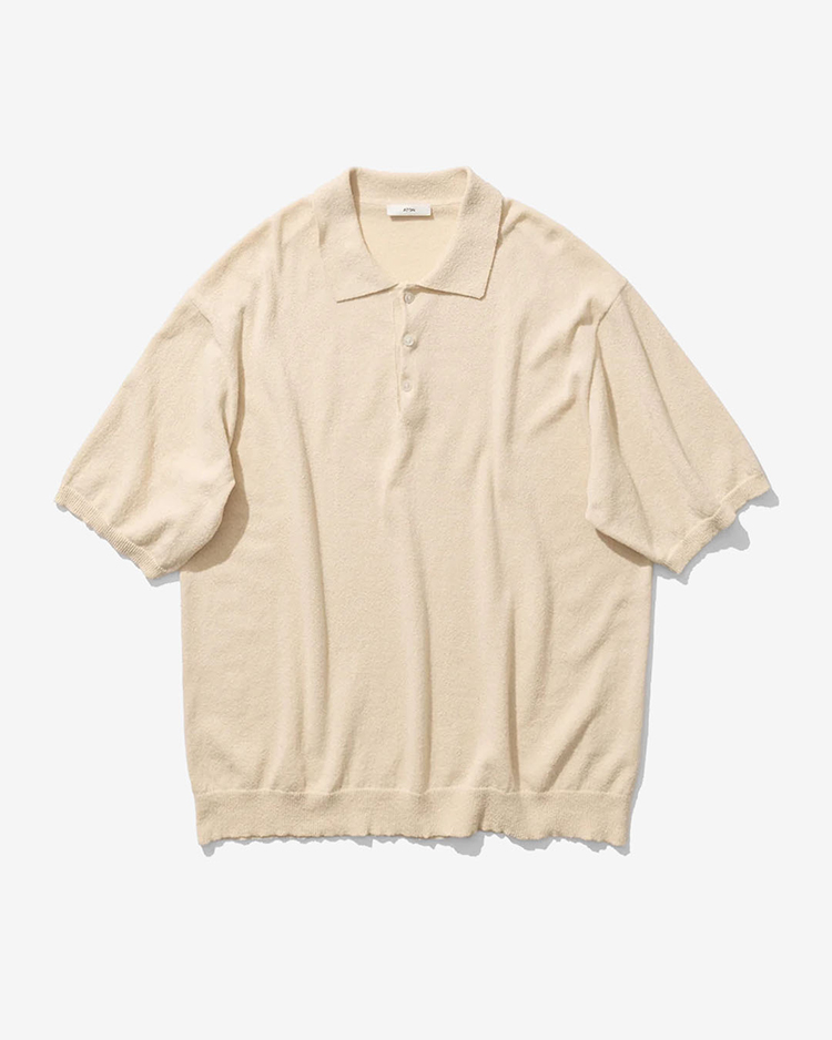 ATON - COTTON WASHI BOUCLE HALF SLEEVE POLO SWEATER