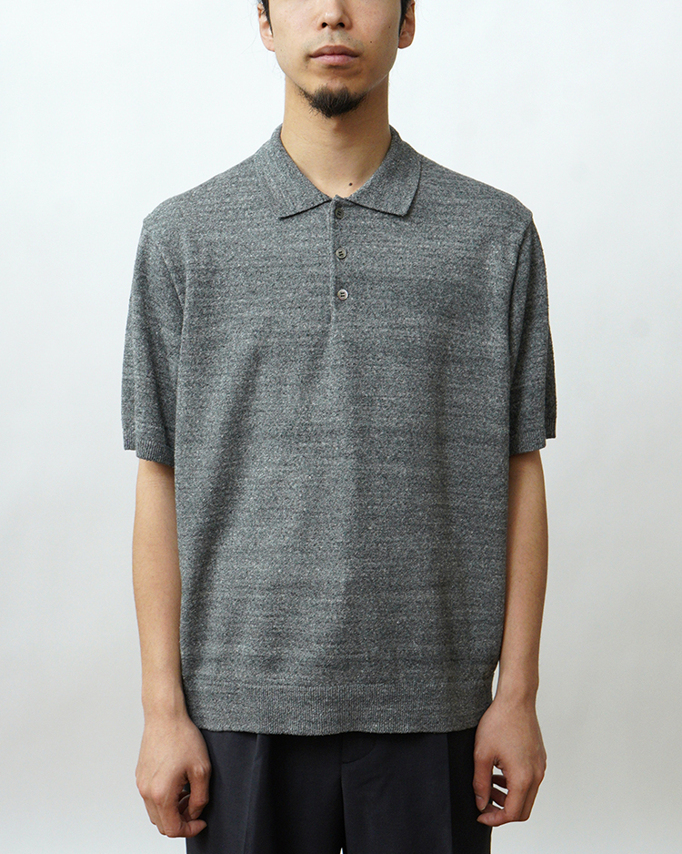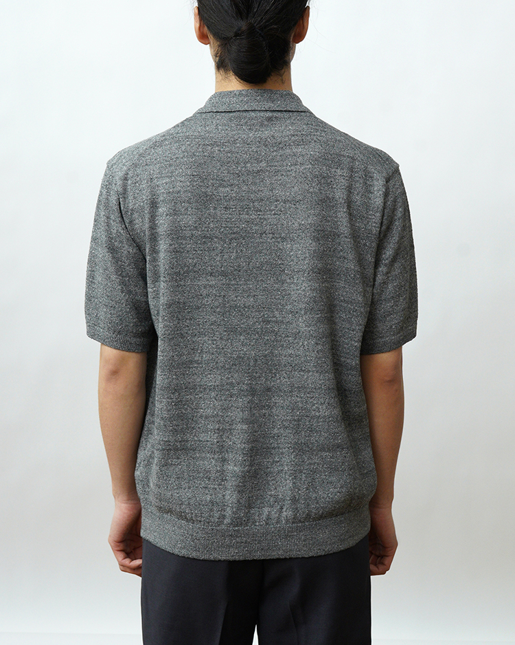 ATON - COTTON WASHI BOUCLE HALF SLEEVE POLO SWEATER