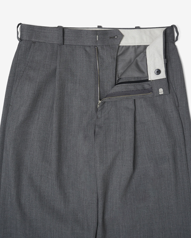 HIGH COUNT GABARDINE ONE-TUCK STRAIGHT SLACKS / DARK GRAY
