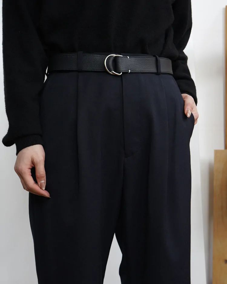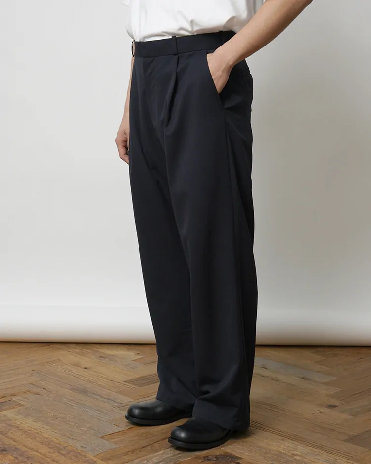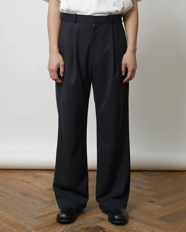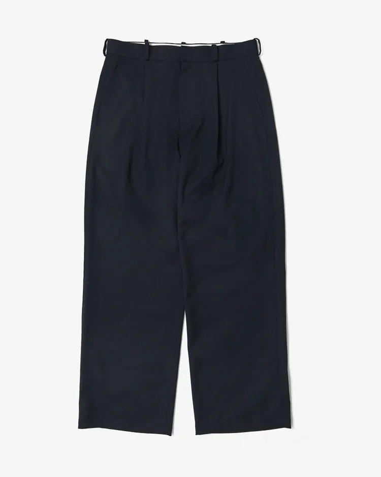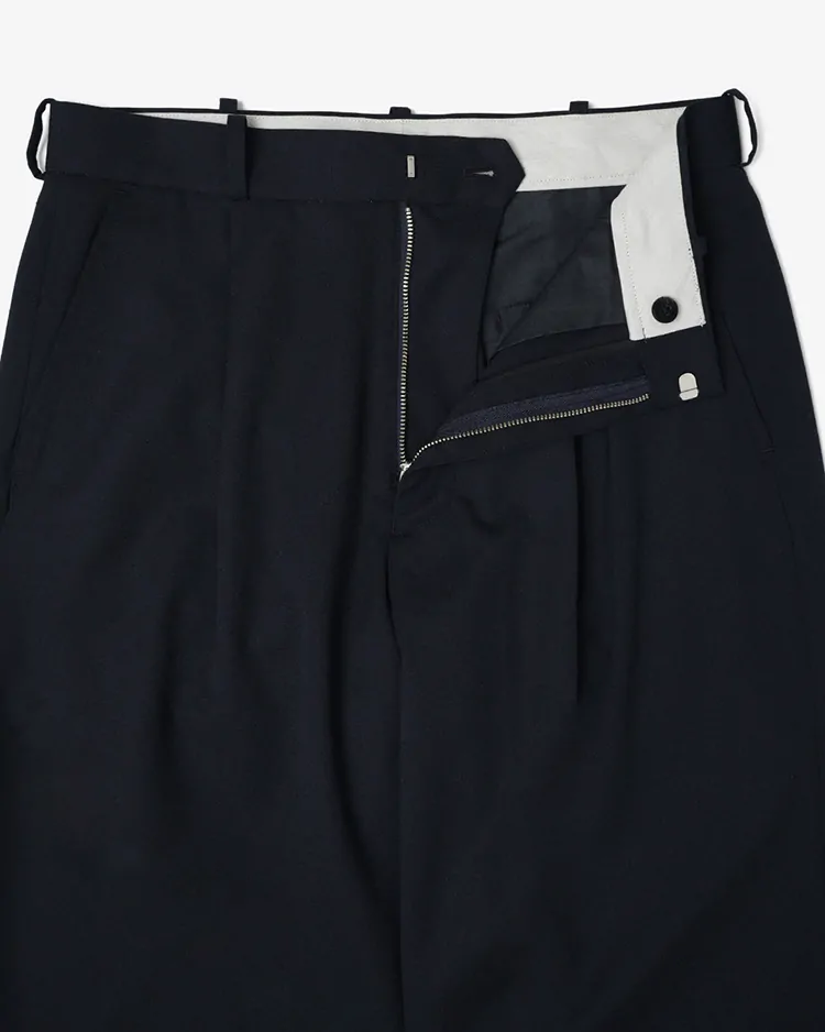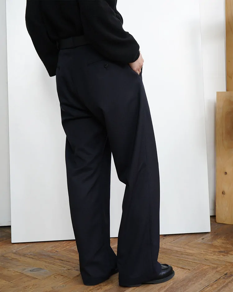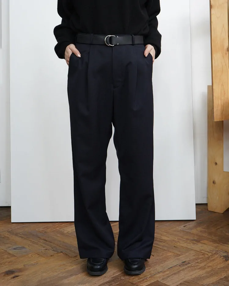 HIGH COUNT GABARDINE ONE-TUCK STRAIGHT SLACKS / DARK NAVY