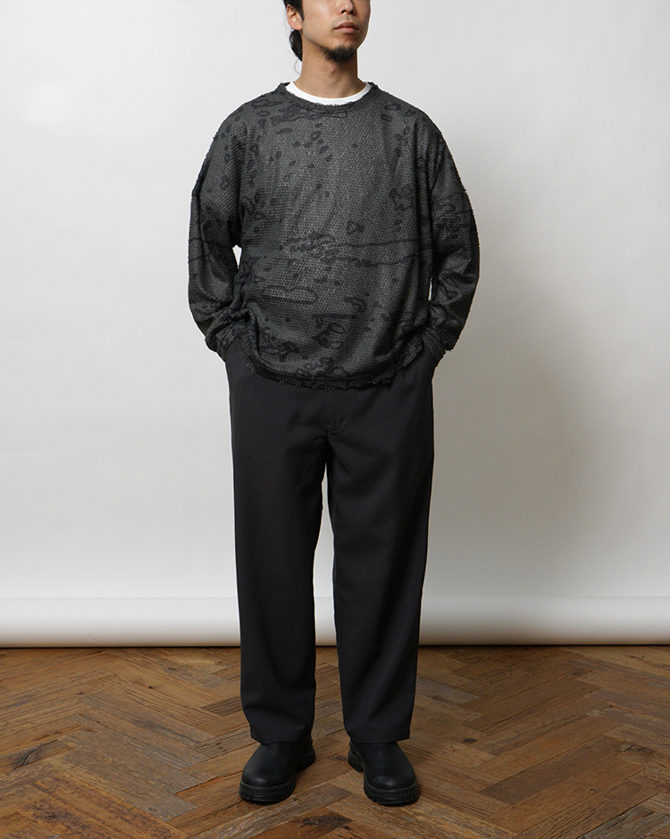・リサイクルポリエステルトロピカル素材を使用したワイドテーパードパンツ