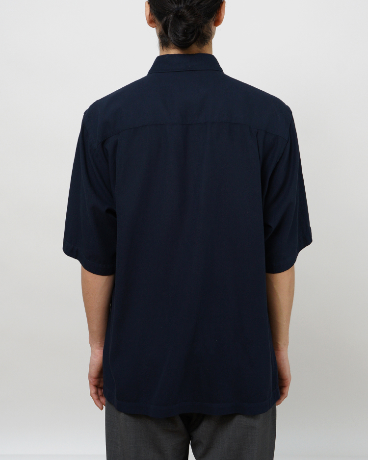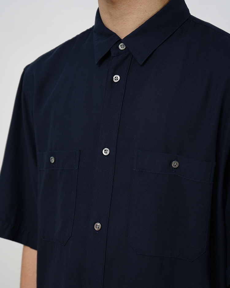 - COTTON SILK VIERA LOOSE FIT HALF SLEEVE SHIRT / NAVY