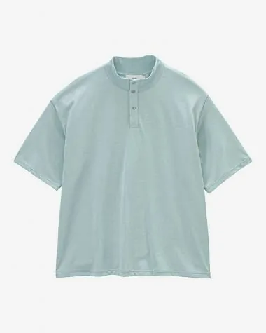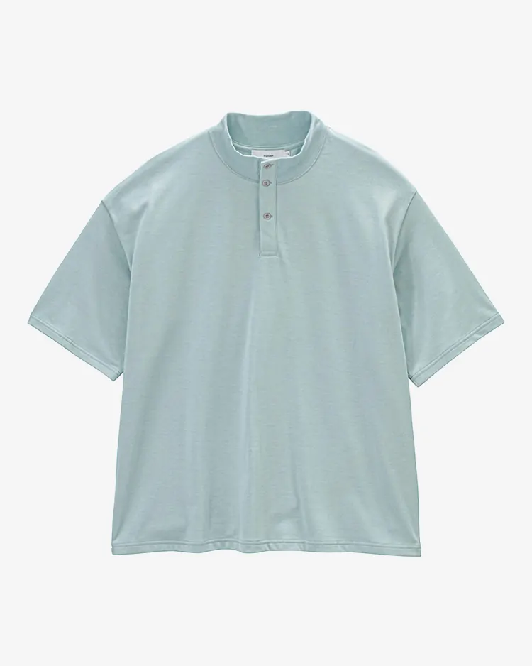 - Tri Spun Cotton S/S Henley High Neck Tee / SMOKE BLUE