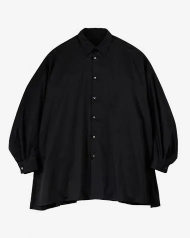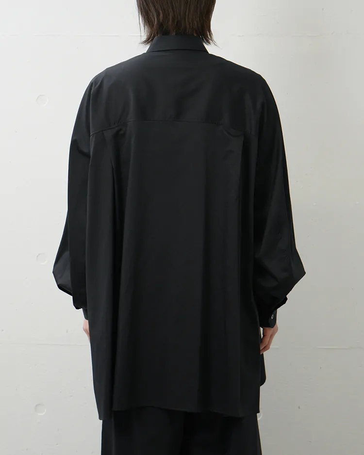 - Silicon Poplin Deep Slit Regular Collar Shirt / BLACK
