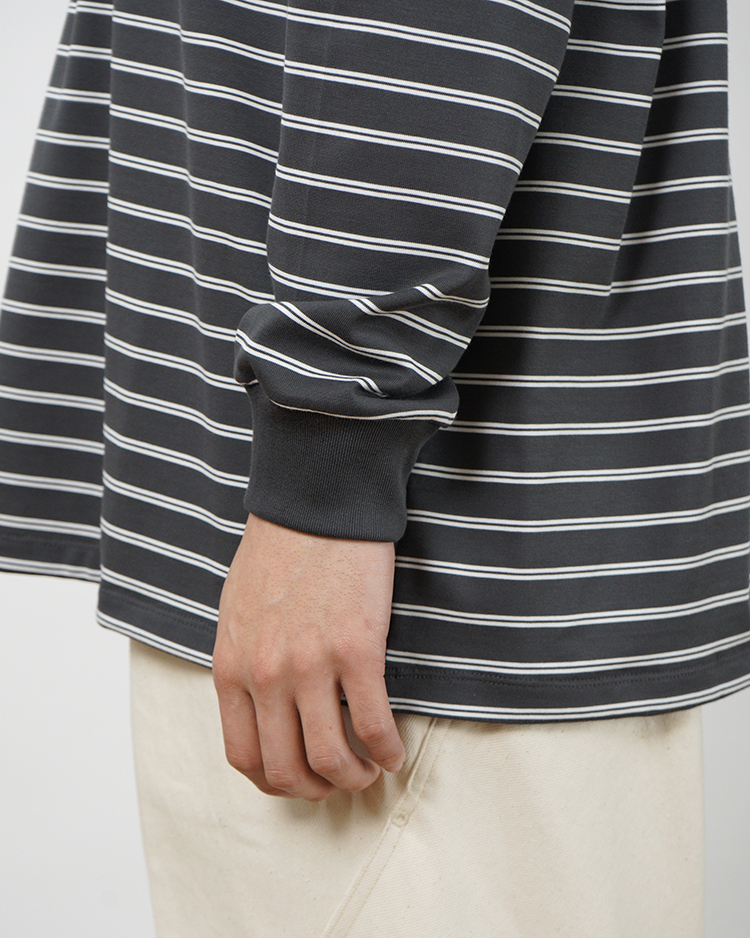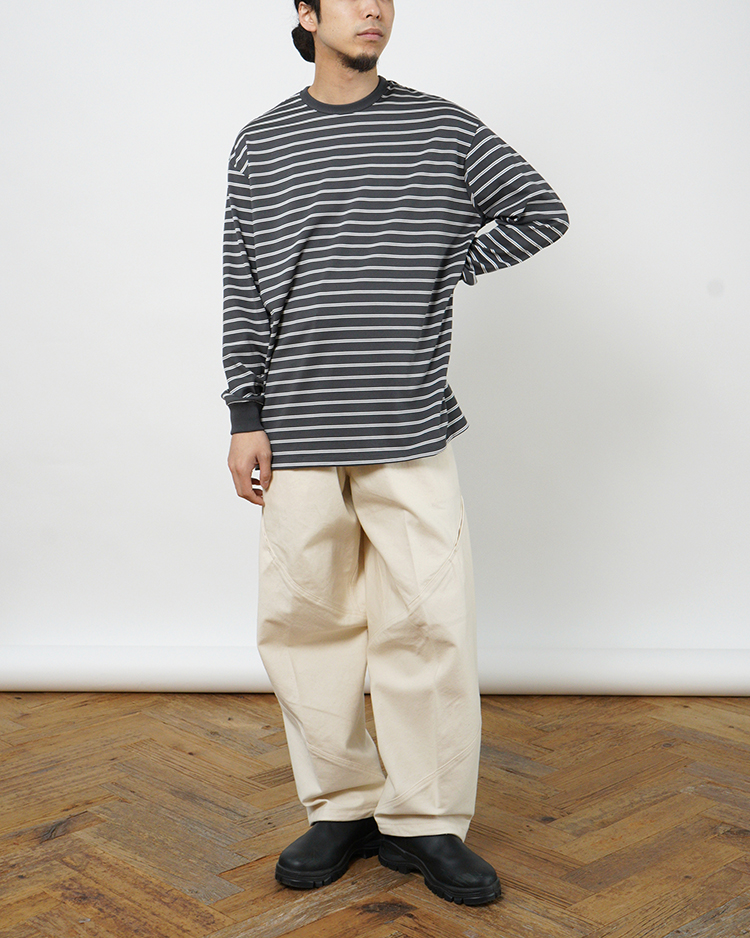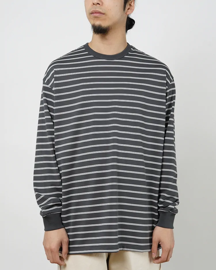 極細糸を撚り合わせた滑らかな天竺素材のロングスリーブボーダーTシャツ。非常に細い3本の糸を撚り合わせることで生まれる自然な光沢と柔らかな肌なじみ。糸の良さを最大限に引き出した均整の取れた編み目が、美しく上品な表情を演出。