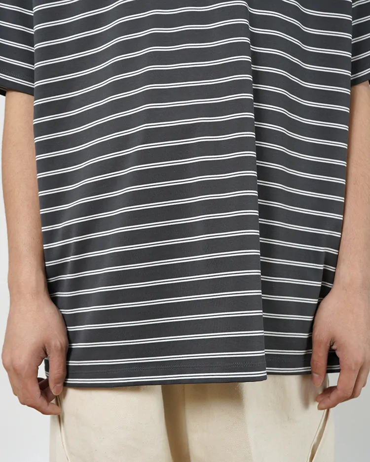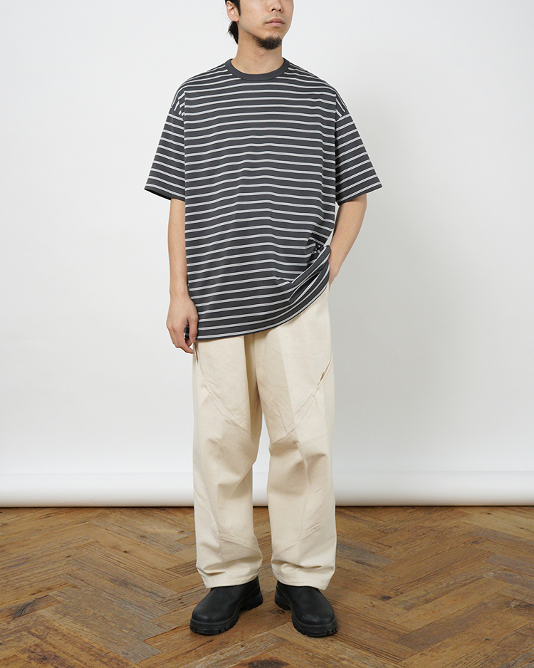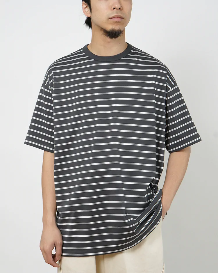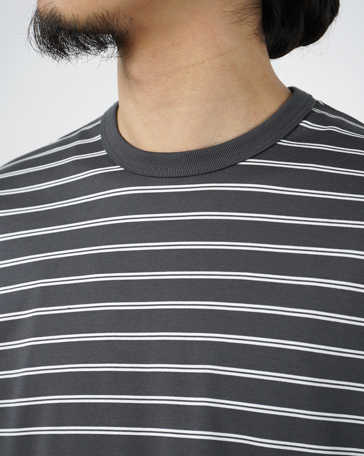 極細糸を撚り合わせた滑らかな天竺素材のボーダーTシャツ。非常に細い3本の糸を撚り合わせることで生まれる自然な光沢と柔らかな肌なじみ。糸の良さを最大限に引き出した均整の取れた編み目が、美しく上品な表情を演出。