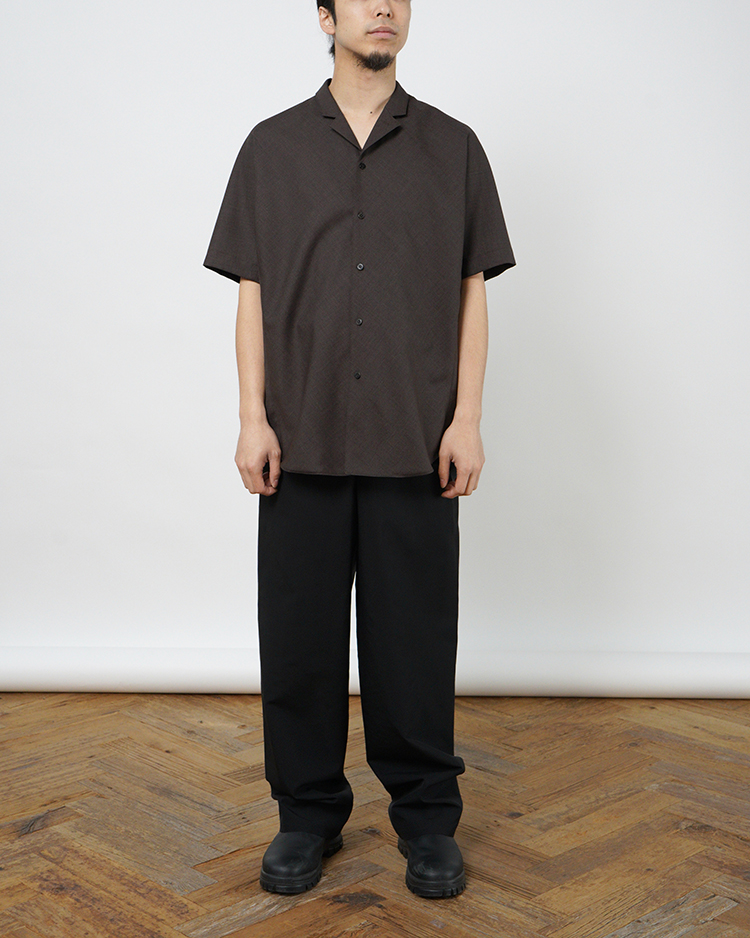 人気のShort Sleeve Shirt Jacketが新色 Heather Brownで登場。複数色の糸が織り重なった杢調の生地が奥行きのある風合いを出している。定番カラーのBlackも再入荷。