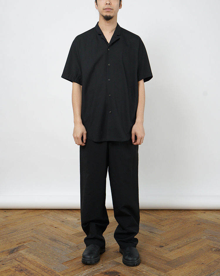 人気のShort Sleeve Shirt Jacketの定番カラーBlackが再入荷。複数色の糸が織り重なった杢調の生地が奥行きのある風合いを出している。新色 Heather Brownも登場。