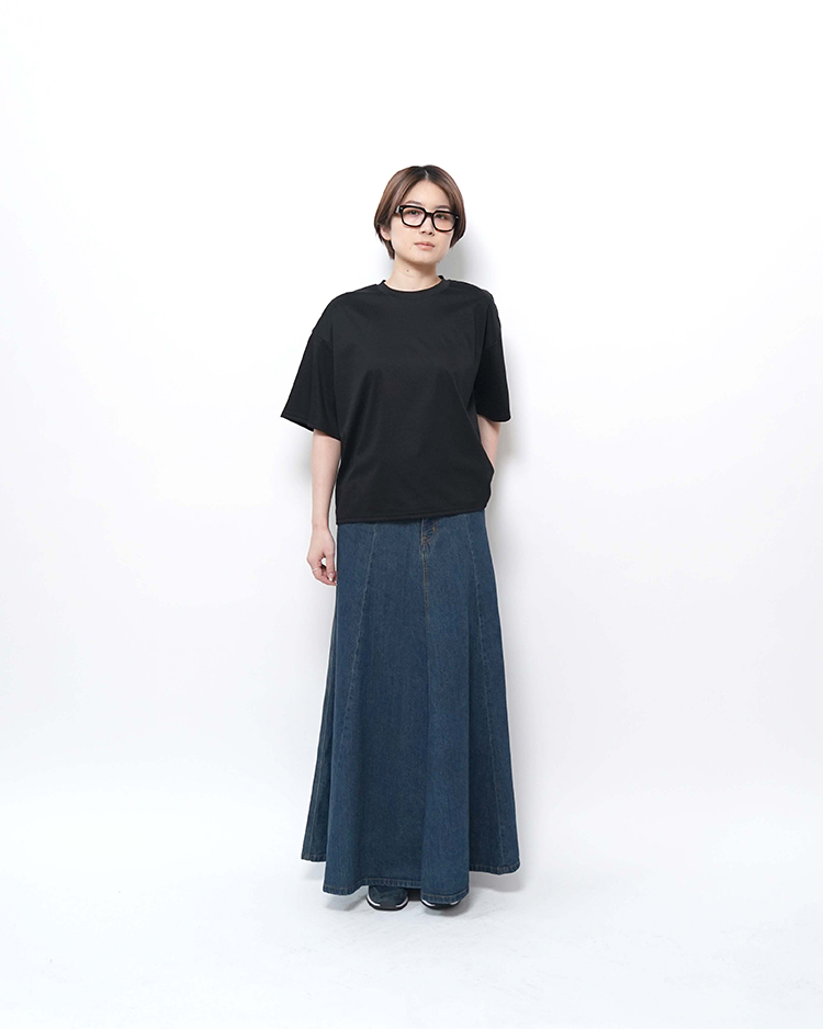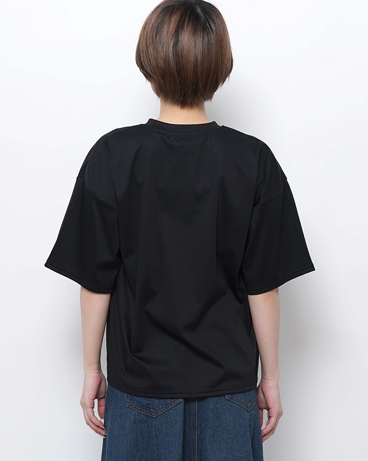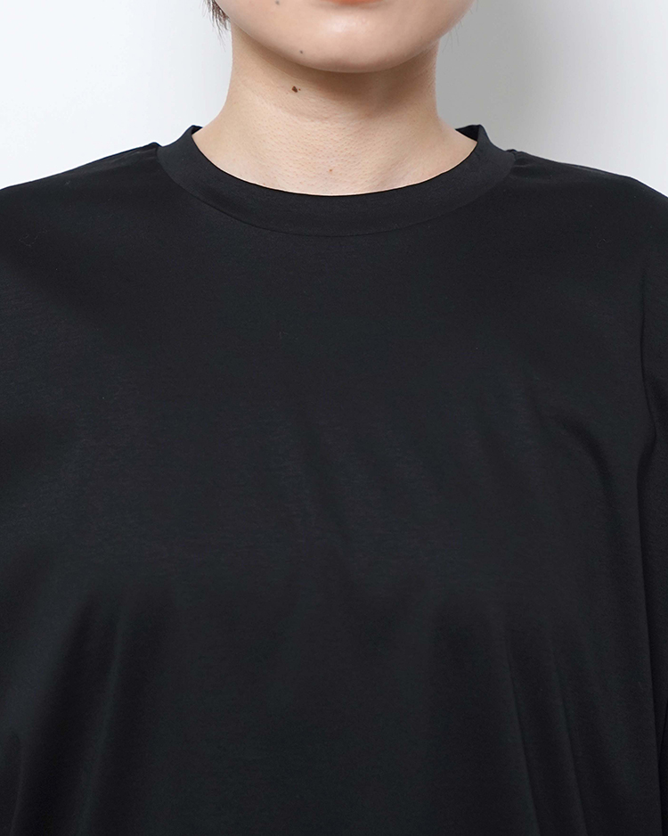 極細番手のコンパクトコットン糸をハイゲージダブルジャージー機で丁寧かつ度詰に編み上げた素材。高濃度で特殊なシルケットと、毛羽を綺麗に落とす加工を施すことで非常にクリアで、しなやかなドレープ性も魅力。肌触り良く1枚でも、インナーとしても上品な印象のTシャツ。