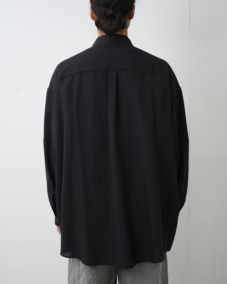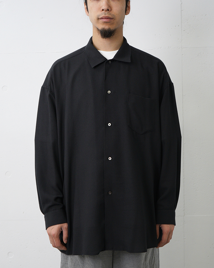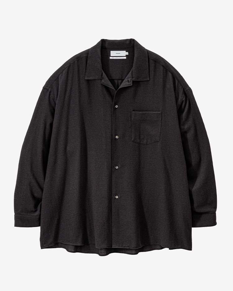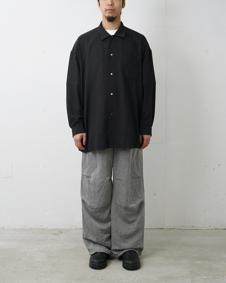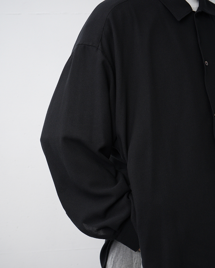 ゆったりとした身幅が特徴の開衿のロングスリーブスリーピングシャツ。ビスコースとポリエステルの強撚糸で織り上げたビエラ素材を使用し、ドライでサラサラとした清涼感ある風合いを実現。仕上げにワッシャー加工を施すことで、柔らかさも兼ね備えた一着。