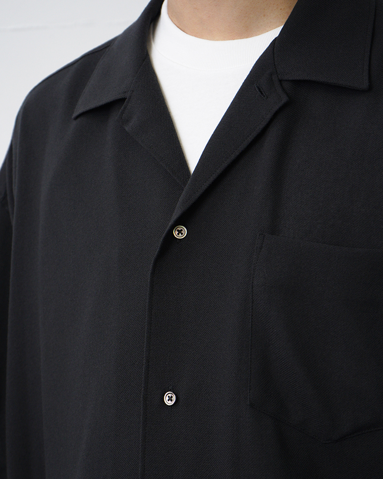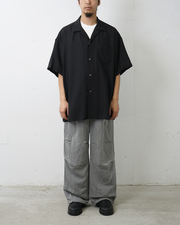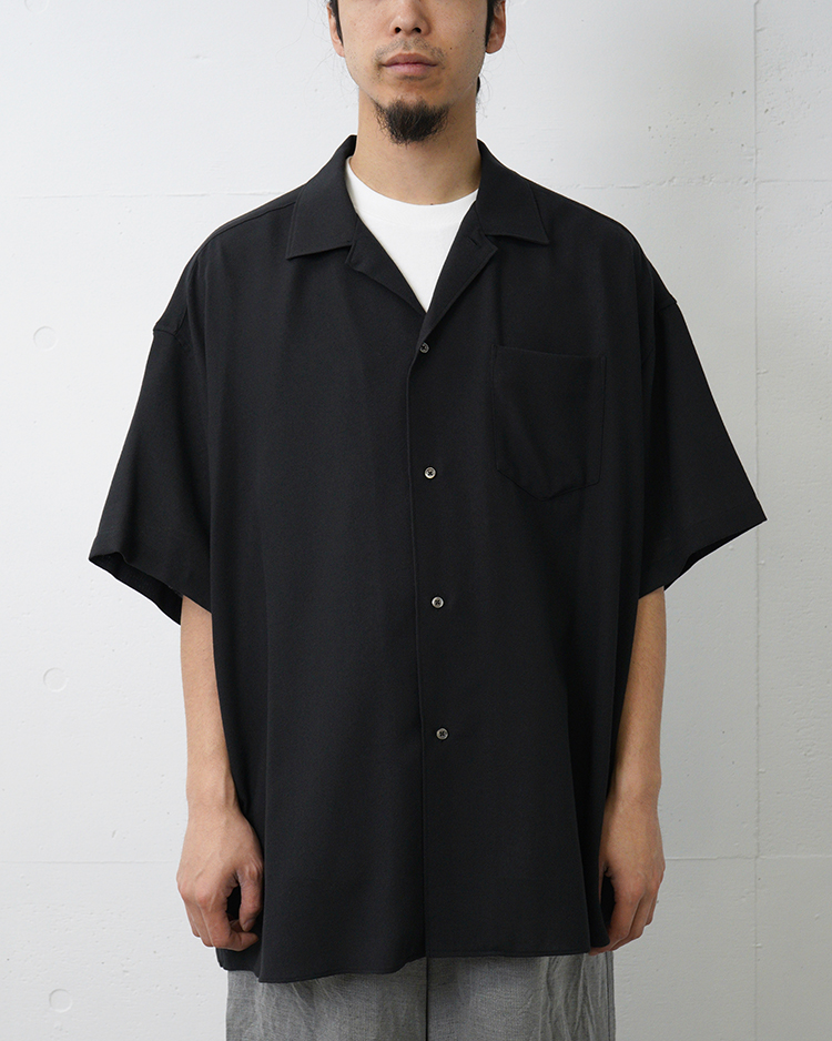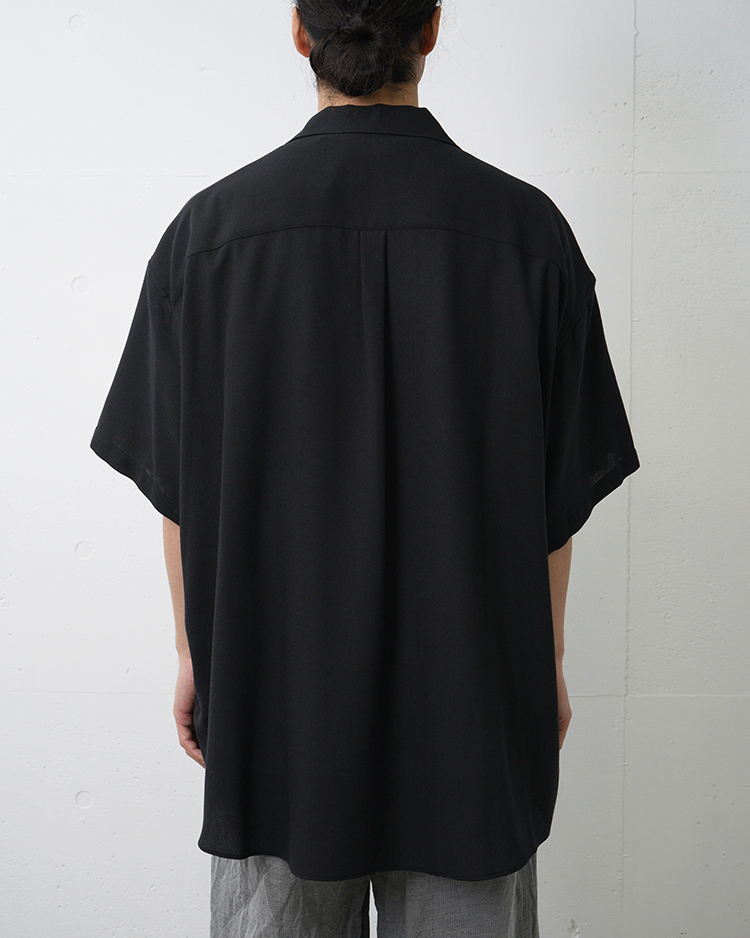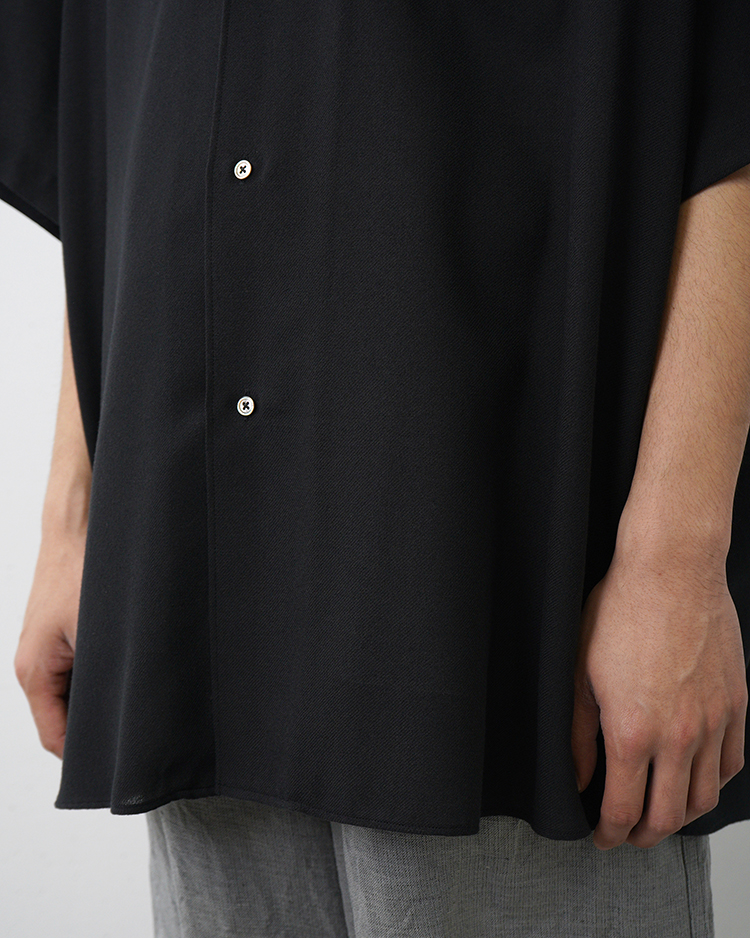 ゆったりとした身幅が特徴の開衿のショートスリーブスリーピングシャツ。ビスコースとポリエステルの強撚糸で織り上げたビエラ素材を使用し、ドライでサラサラとした清涼感ある風合いを実現。仕上げにワッシャー加工を施すことで、柔らかさも兼ね備えた一着。