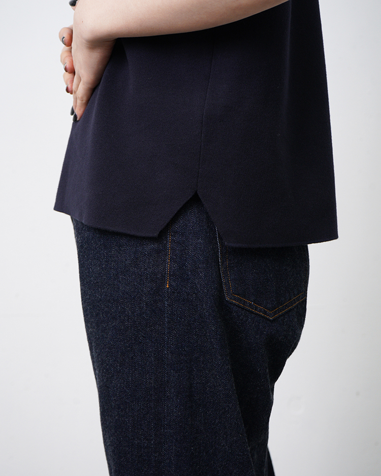 BATONER夏の定番として高い支持を集める、32ゲージスムースシリーズ。世界でも稀少な超ハイゲージの横編機を用い、超細番手のコットン強撚糸をスムース編みで丁寧に編み立てています。ニットならではのすっきりとした上品なディテールに加え、1枚で着用しても安心感のある適度な厚みが魅力。さらに、スムース編みによる優れたキックバック性で型崩れがしにくく、長く美しいシルエットを保ちます。