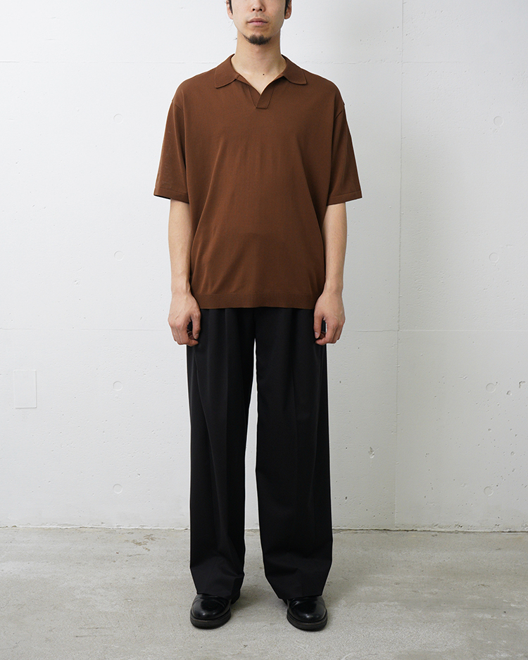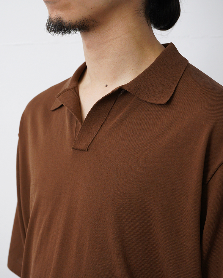程よいリラックス感が特徴のスキッパーポロセーター。天竺16ゲージを採用し、度詰めでしっかりとした着心地に仕上げました。裾リブが締まりすぎておらず、カットソーのようなシルエットを採用しています。