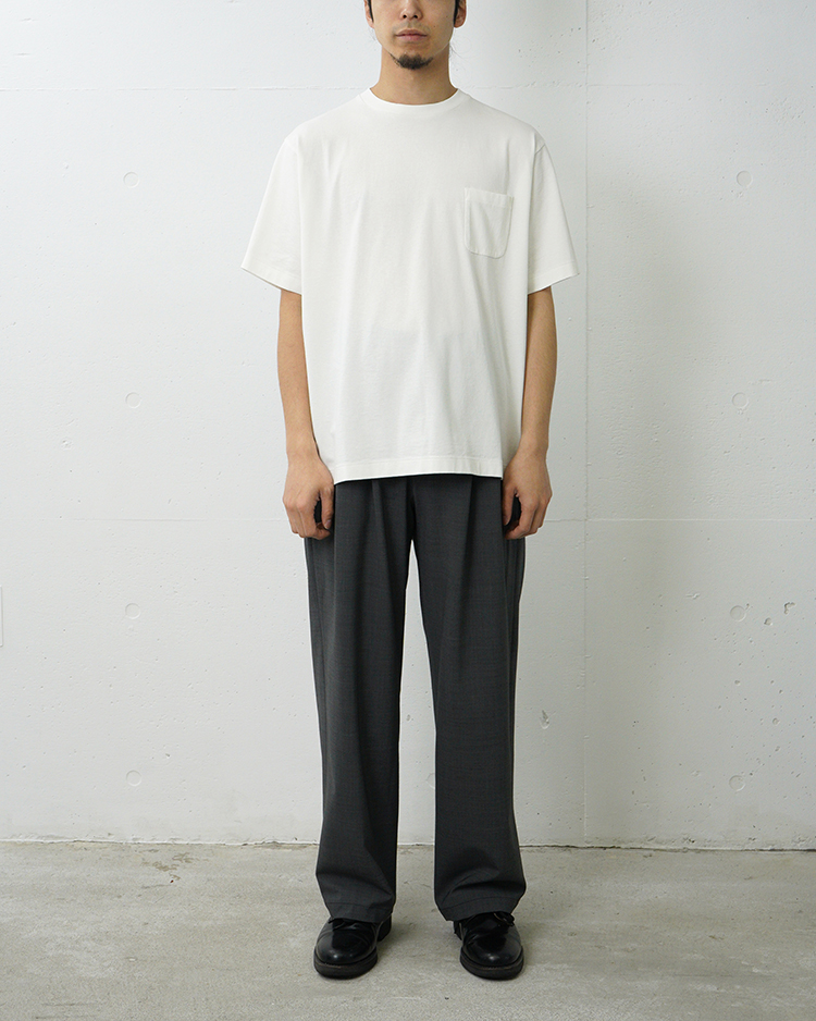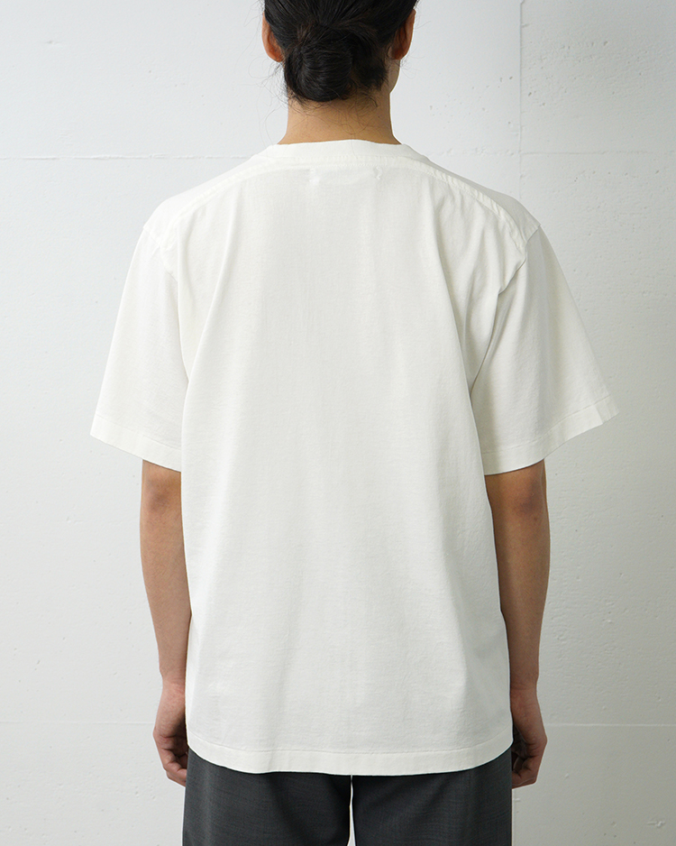 強く撚った綿糸を、密に編み込んで、ドライなタッチのTシャツを作りました。身幅にゆとりを持たせた、リラックスフィットのTシャツです。