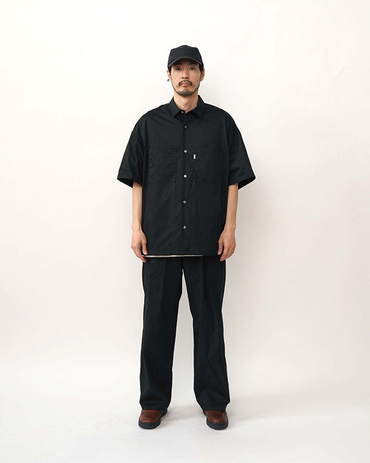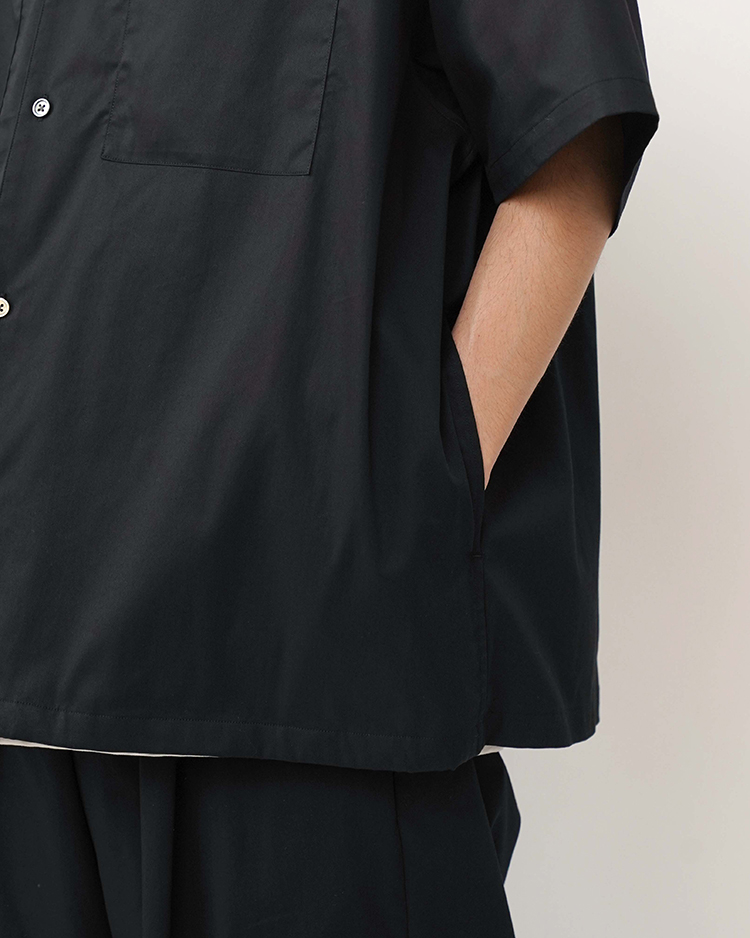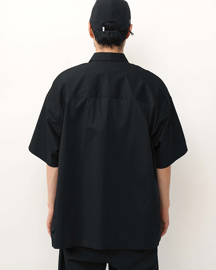 Solotexの持つ高い形態回復性・軽快なストレッチ性、圧倒的な軽さもポイントのツイル素材。定番のオーバーサイズボックスシャツのショートスリーブ。