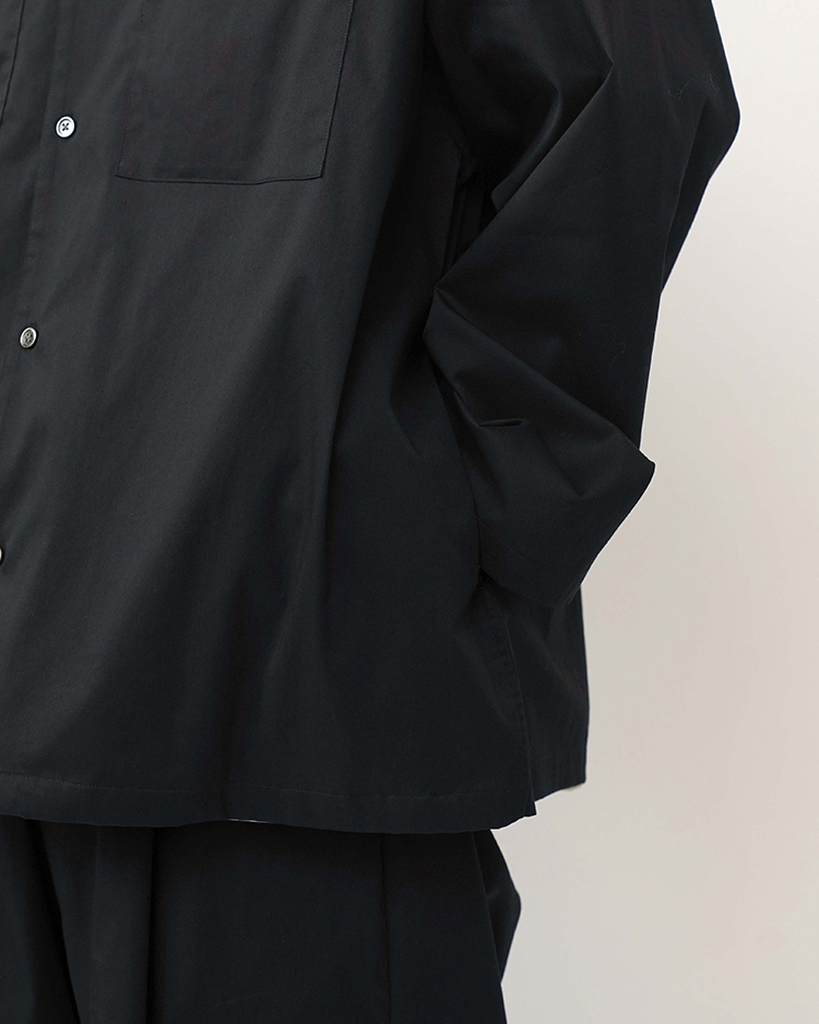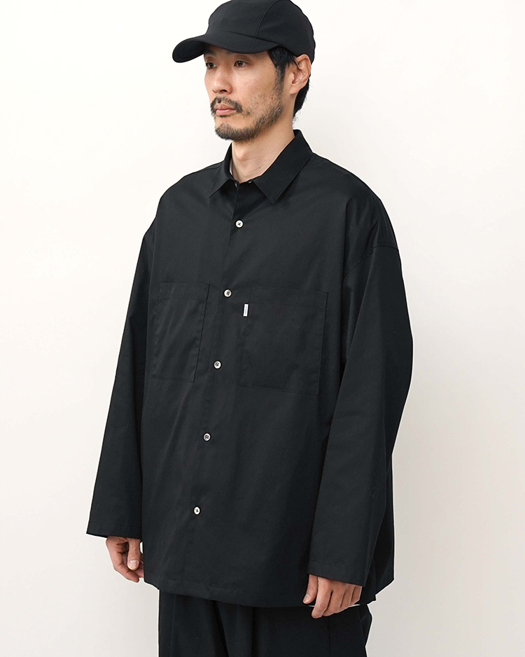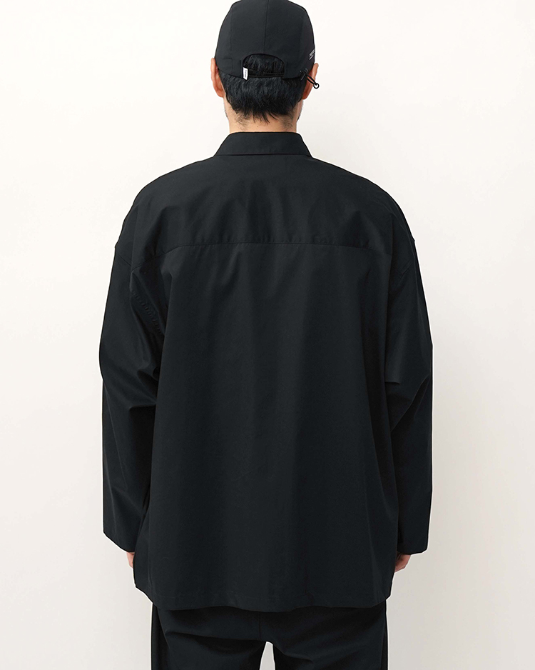 Solotexの持つ高い形態回復性・軽快なストレッチ性、圧倒的な軽さもポイントのツイル素材。定番のオーバーサイズボックスシャツのロングスリーブ。