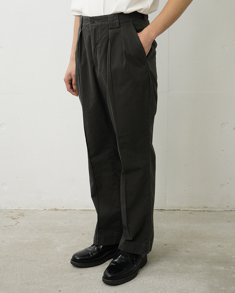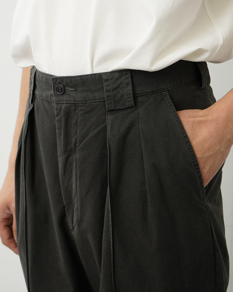 POPLIN CLOTH PIN TUCK TROUSERS / FADED CHARCOAL