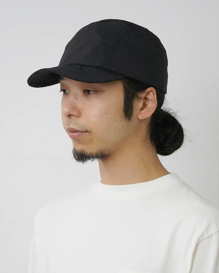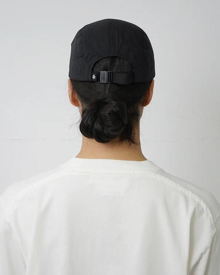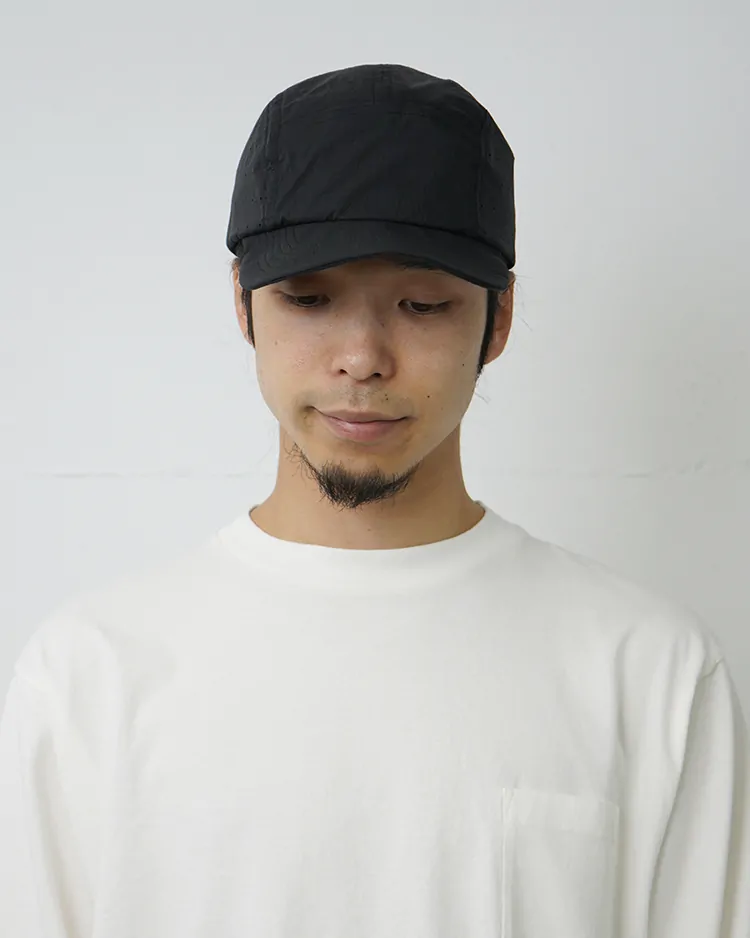 シアー感のあるウインドシェル生地で仕上げたユニークなキャップ。透けたときの裏側の見え方にもこだわった、透け感を活かしたコーディネートを楽しめるアイテムです。