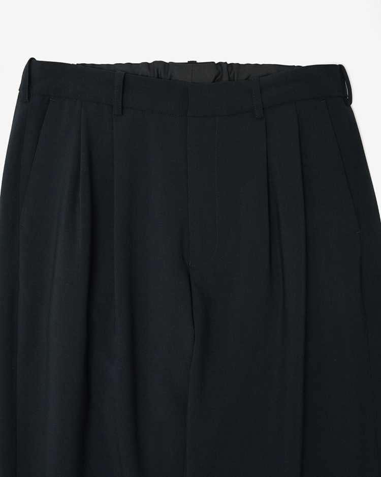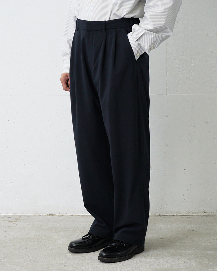 WOOL TWO-TUCK WIDE EASY SLACKS / DARK NAVY