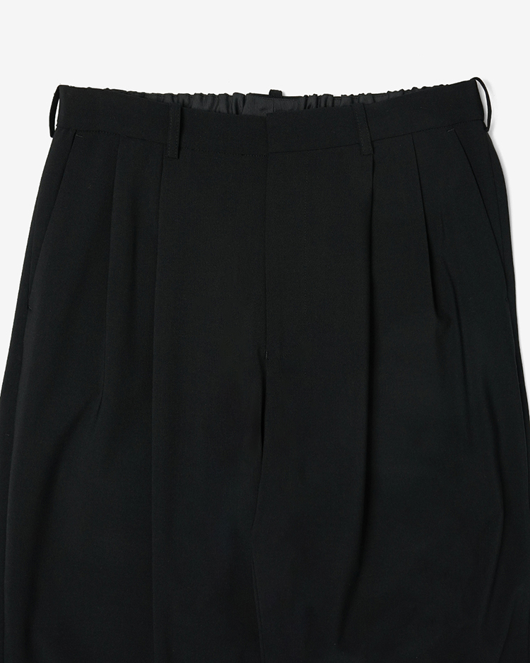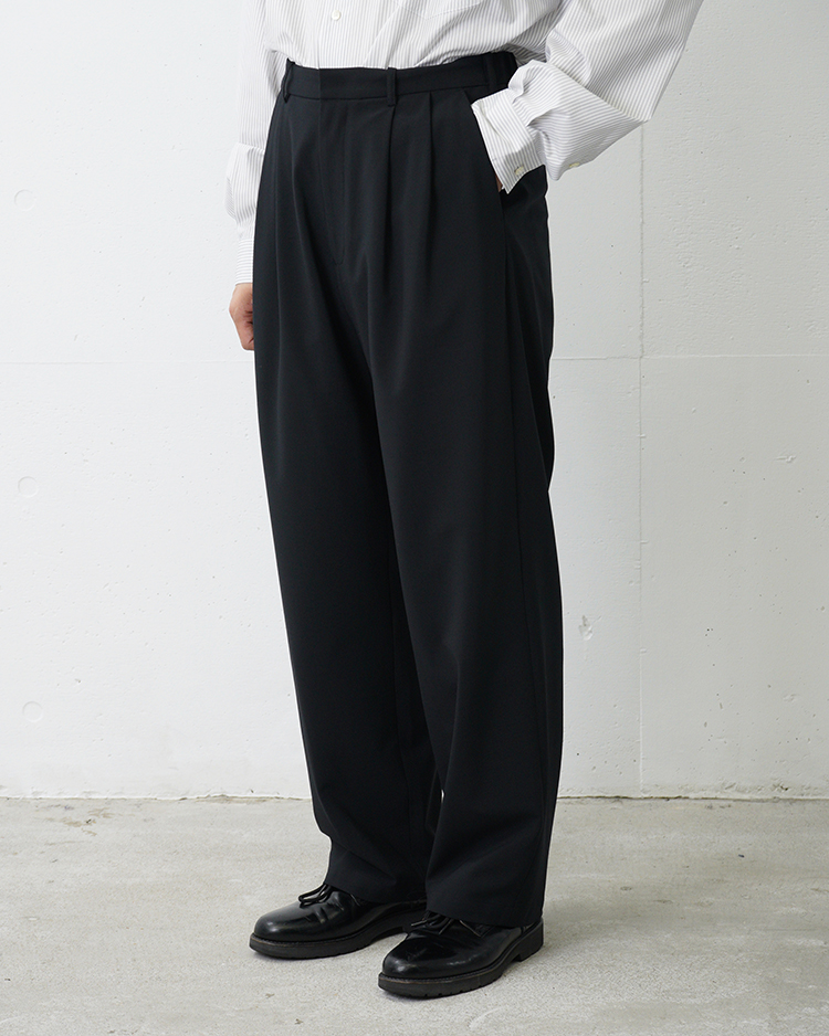 WOOL TWO-TUCK WIDE EASY SLACKS / BLACK