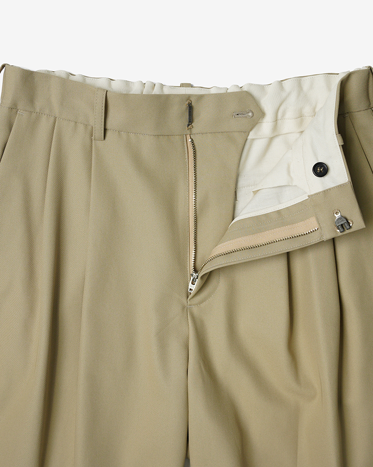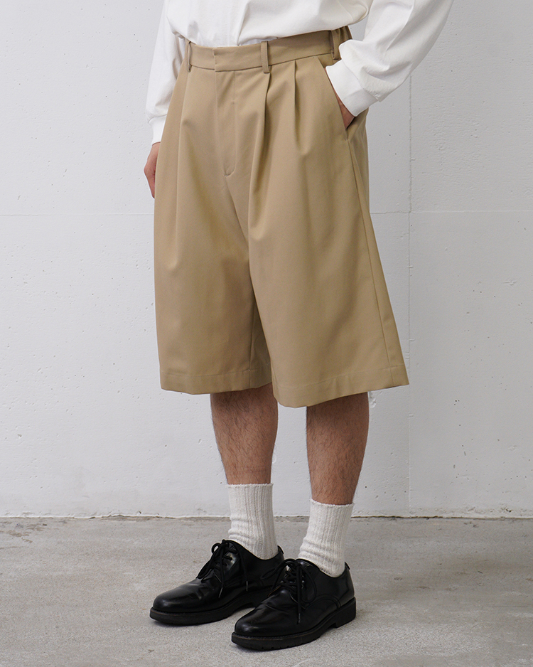 HIGH TWIST COTTON TWILL TWO-TUCK WIDE EASY SHORTS / BEIGE